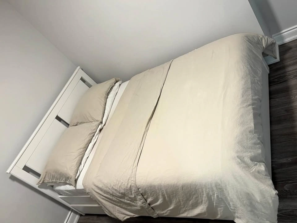 Selling my IKEA SONGESAND bed frame with under-bed storage box, slatted base and mattress. Only 8 months old and in excellent condition — no damage, scratches, or stains.