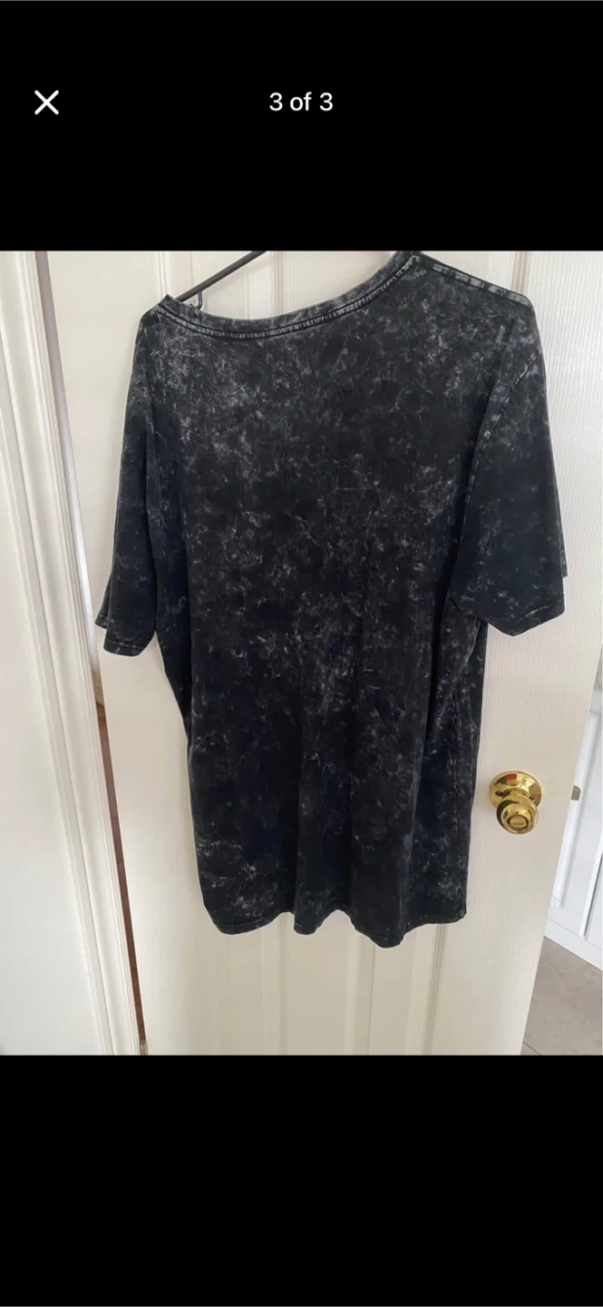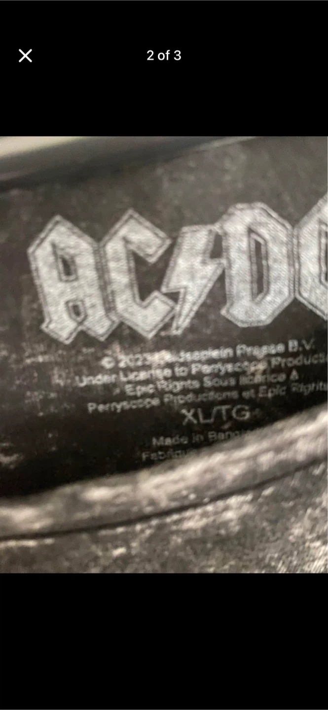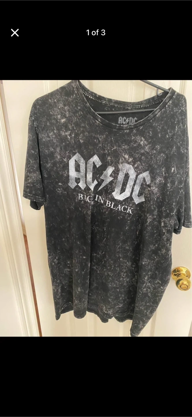 This is an AC/DC 'Back in Black' graphic t-shirt. It's a size XL with a mineral wash design. It's made of 100% cotton.