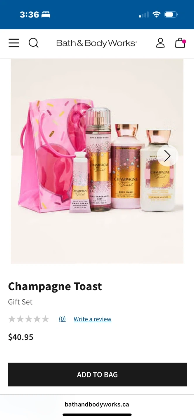 Selling a Bath & Body Works Champagne Toast Gift Set! It includes a hand cream, fine fragrance mist, body wash, and moisturizer.