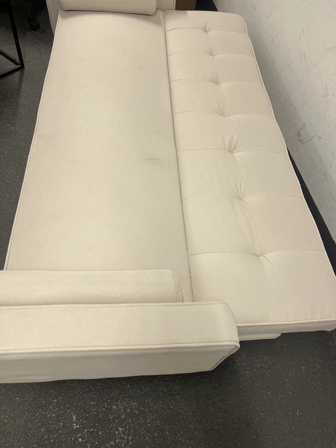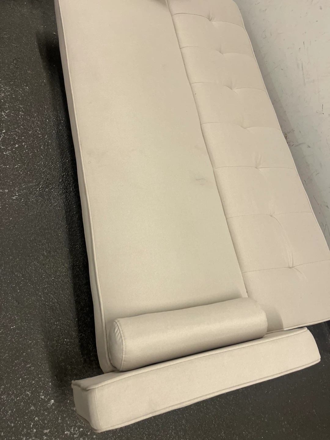 White Futon Sofa with Two Throw Pillows