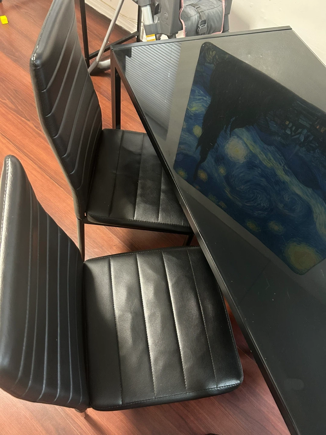 Selling a sleek black glass dining table complete with four matching chairs