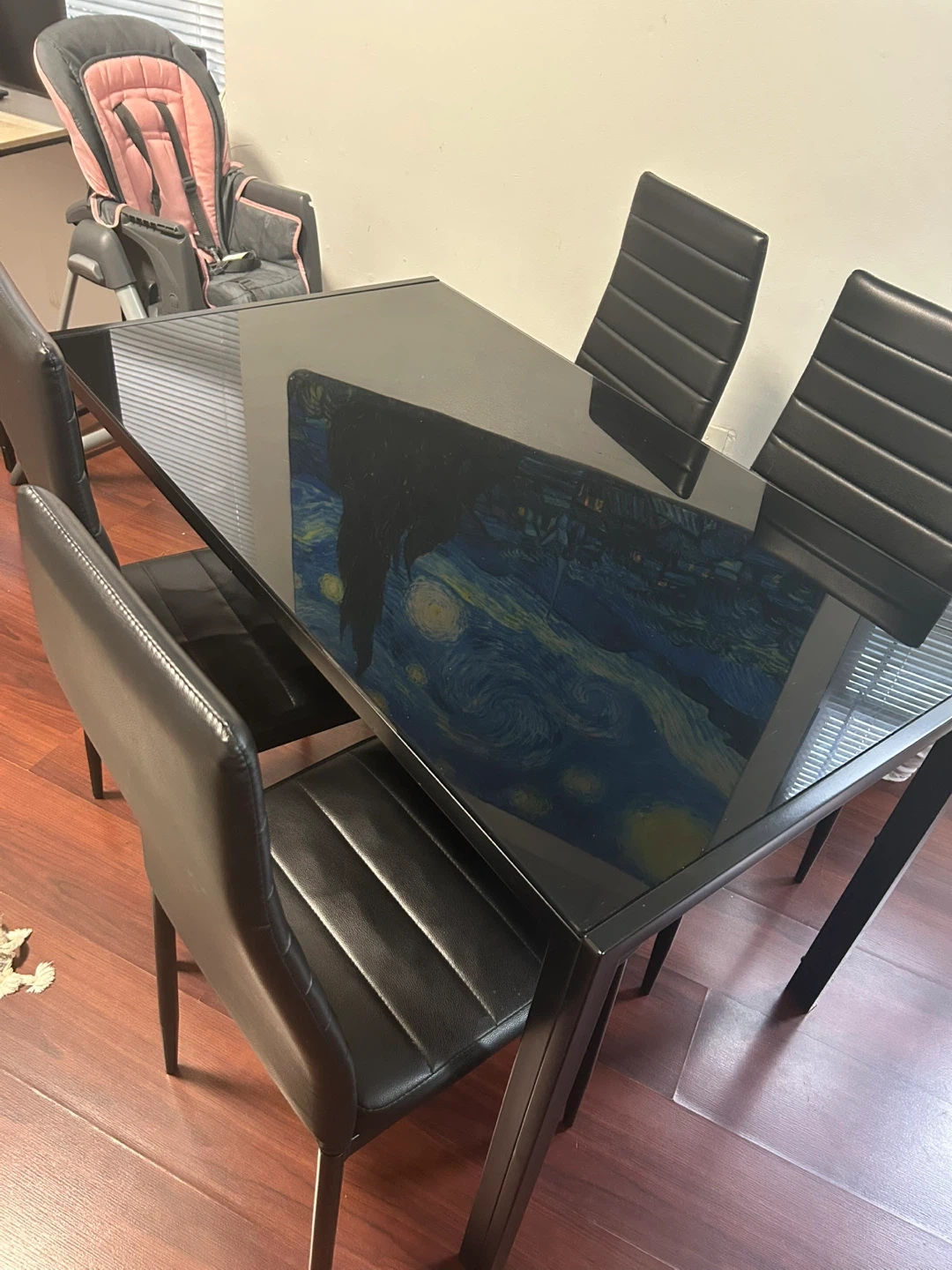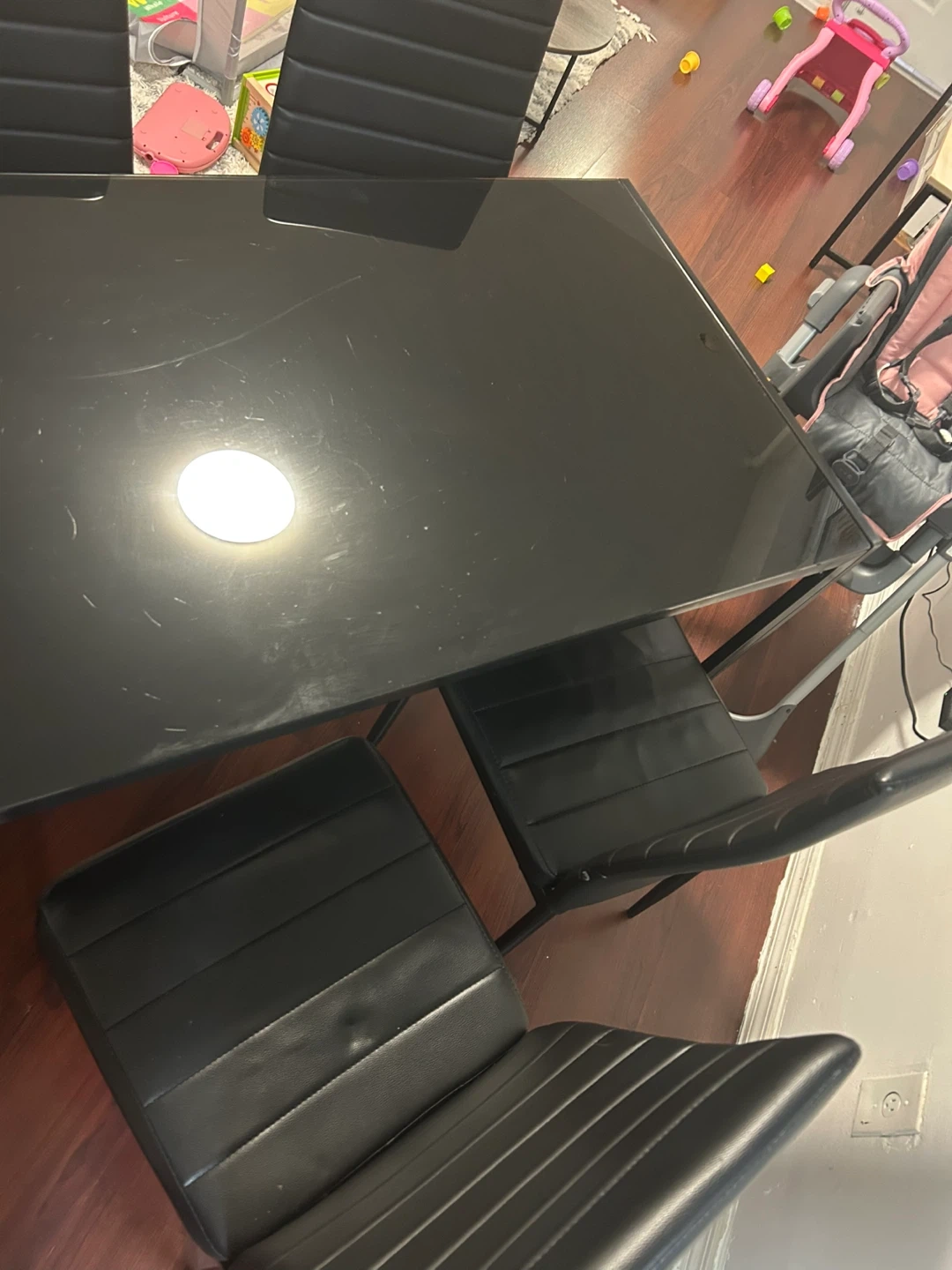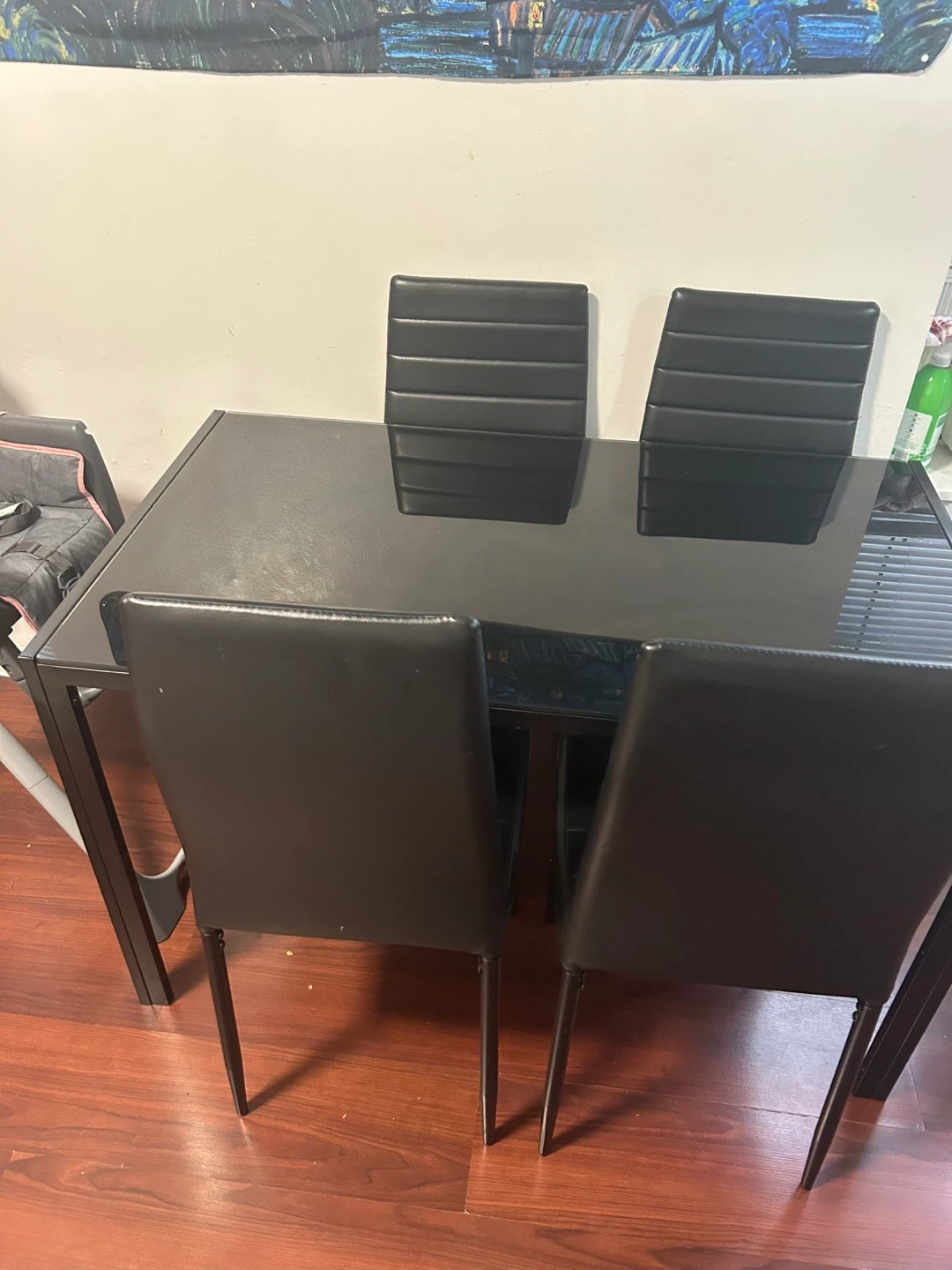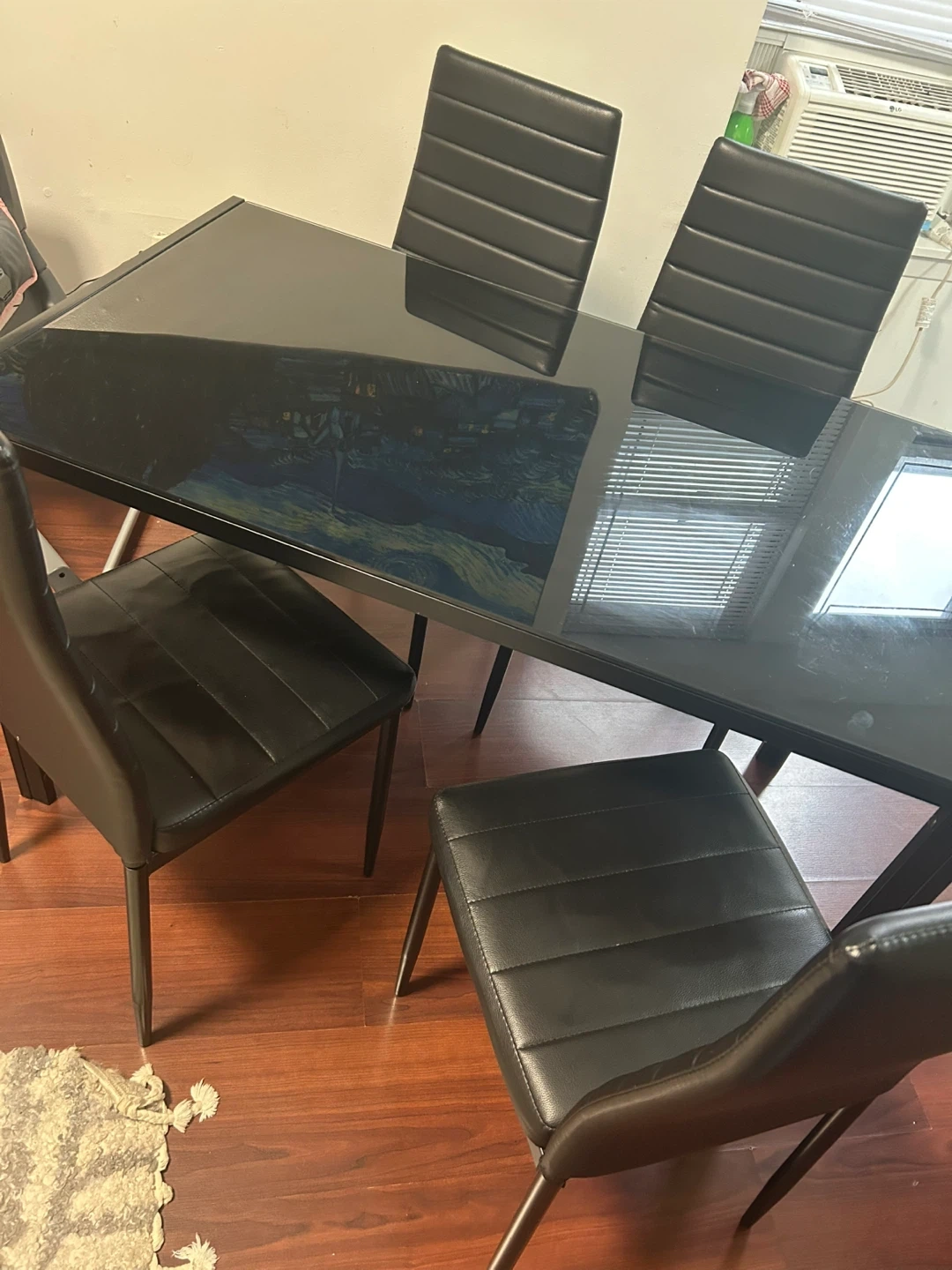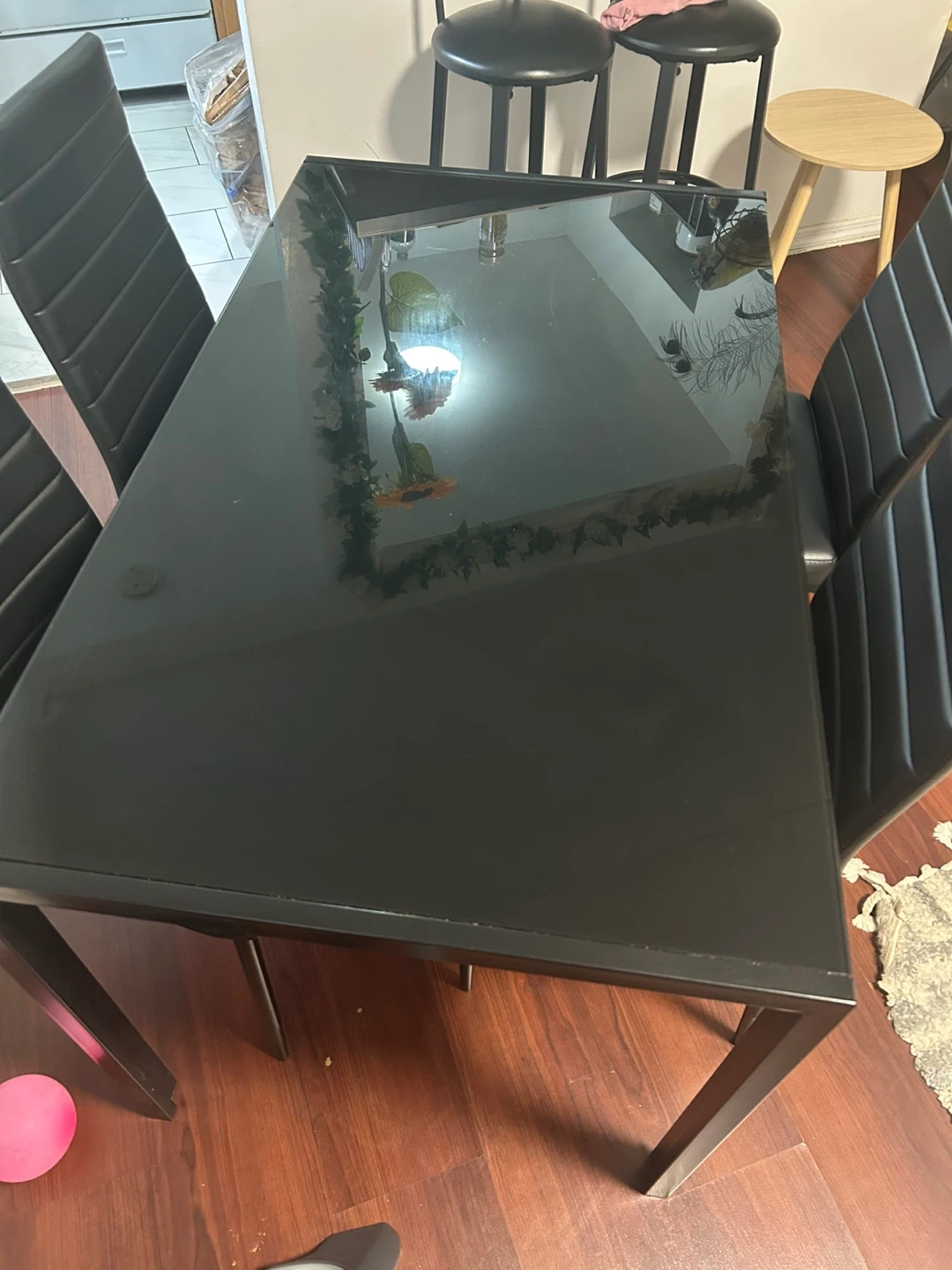 Selling a sleek black glass dining table complete with four matching chairs