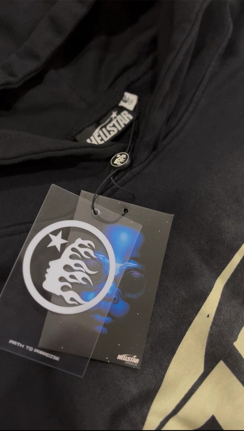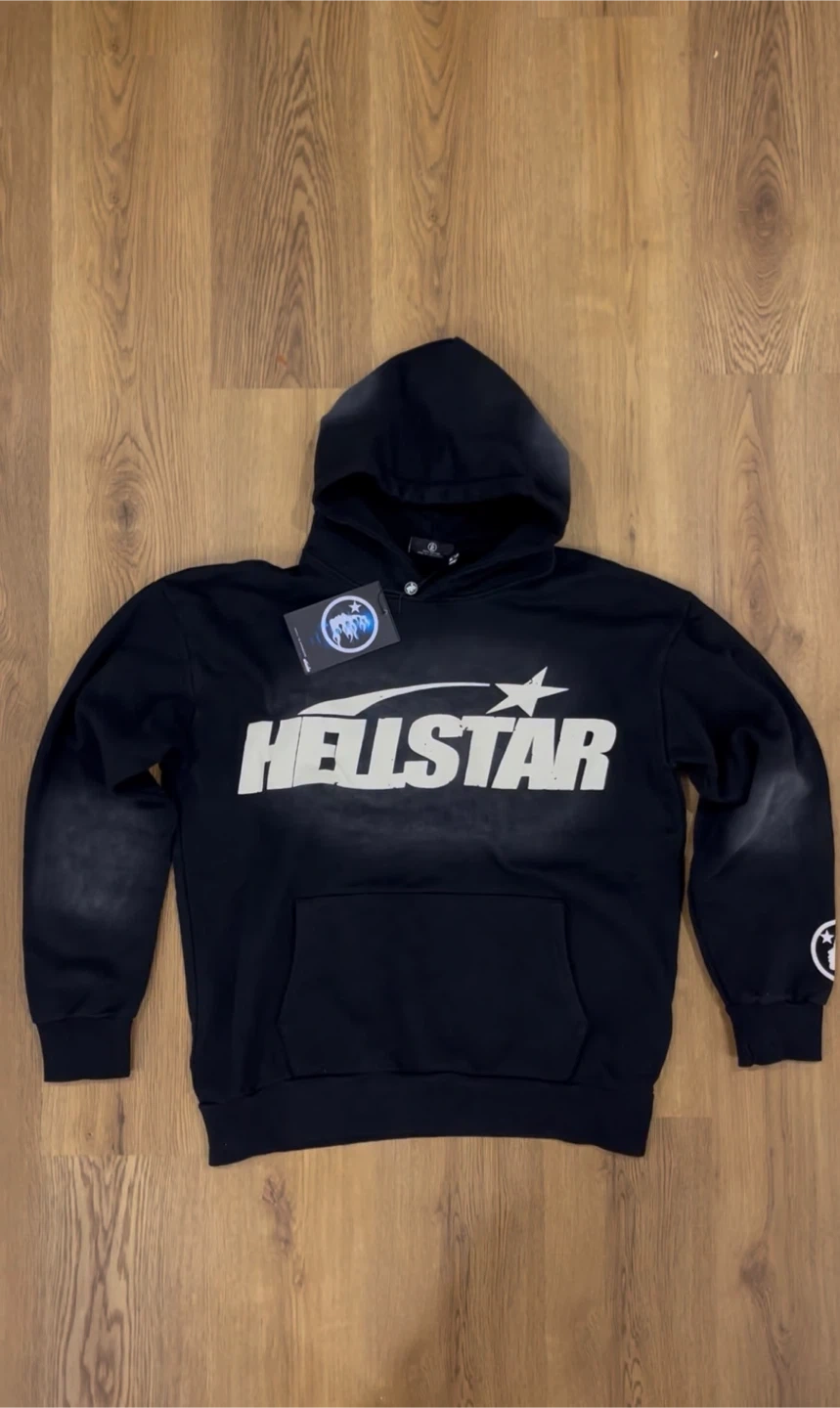 Selling a Hellstar black hoodie. Features a unique design on the front and back. Perfect for adding a statement piece to your wardrobe!