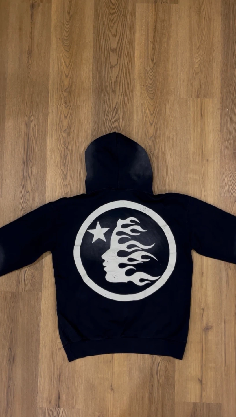 Selling a Hellstar black hoodie. Features a unique design on the front and back. Perfect for adding a statement piece to your wardrobe!