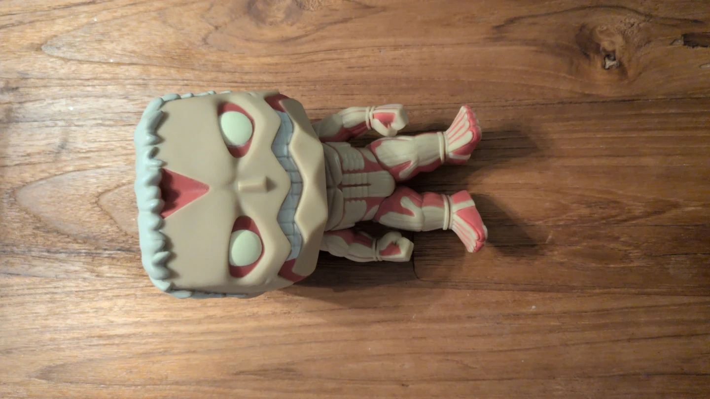 This is a Funko Pop! figure of the Colossal Titan from Attack on Titan. It's a vinyl collectible with a beige and red colour scheme. The figure stands about 6 inches tall and has visible musculature details. I do not own the original packaging anymore.