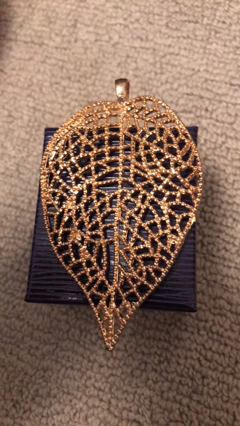 Selling a gold leaf pendant necklace. perfect for gifting The pendant has a delicate, intricate design.