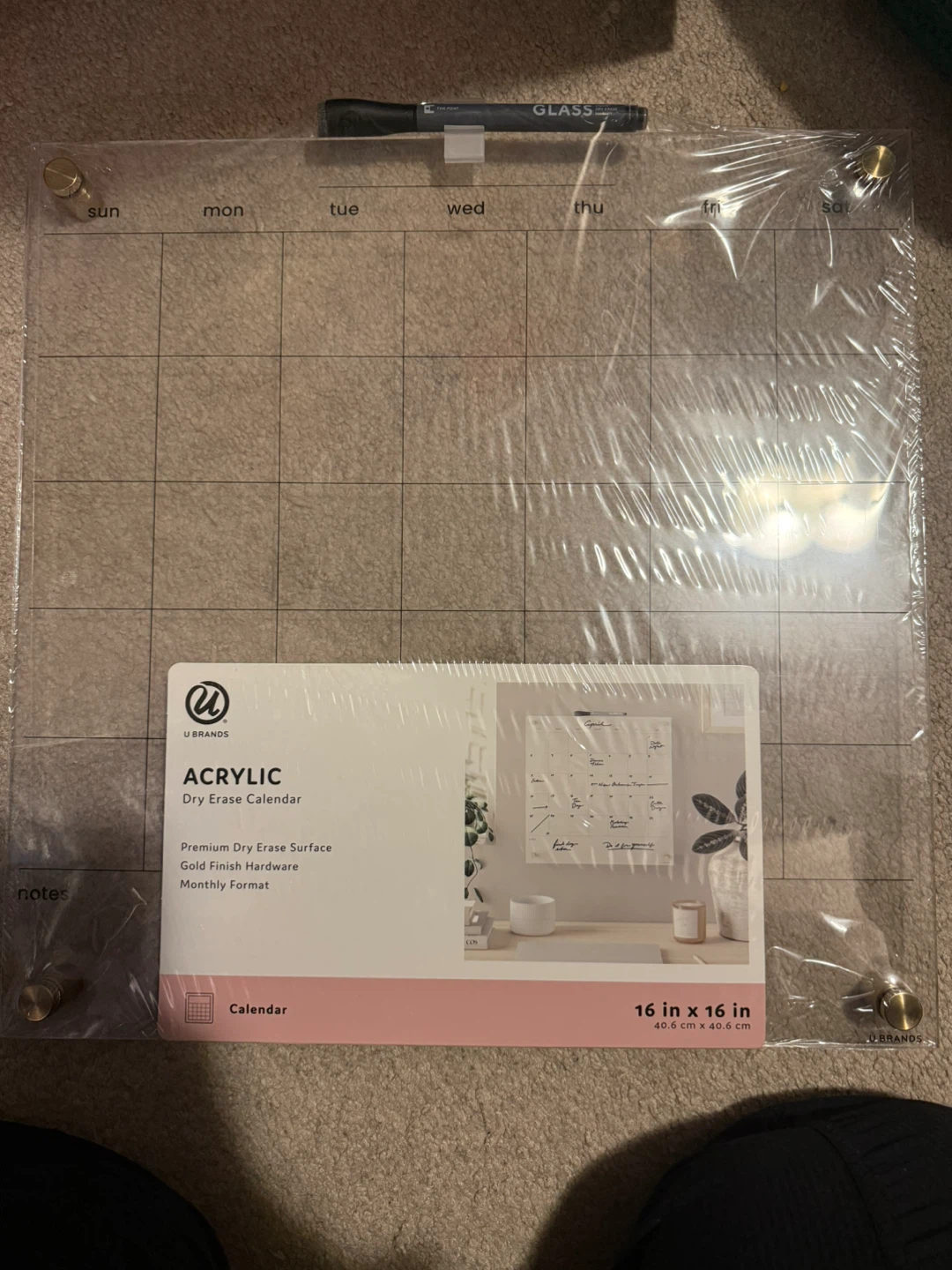 U Brands Acrylic Dry Erase Calendar 16x16 in