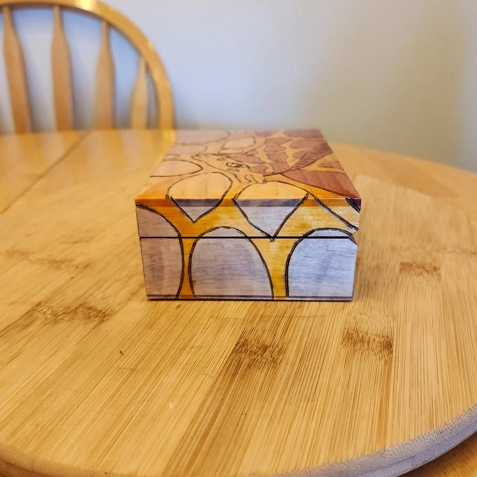 Painted Engraved Giraffe Trinket Box, Keepsake Box, Decor