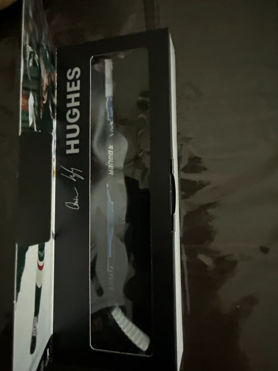 This is a "Hughes" mini hockey stick, part of the McDonald's Star Sticks promotion. It's a collectible item from the 2025-2026 season. The stick comes in its original packaging with a picture of the player.
