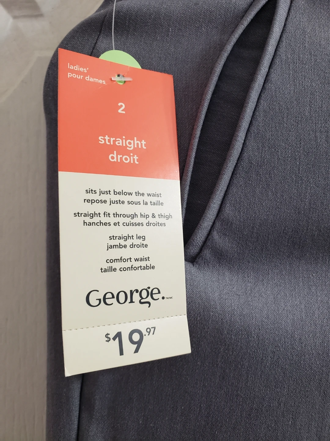 Brandnew George Ladies' Size 2 Grey Straight Leg Pants