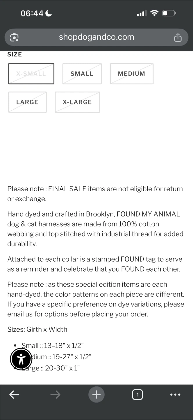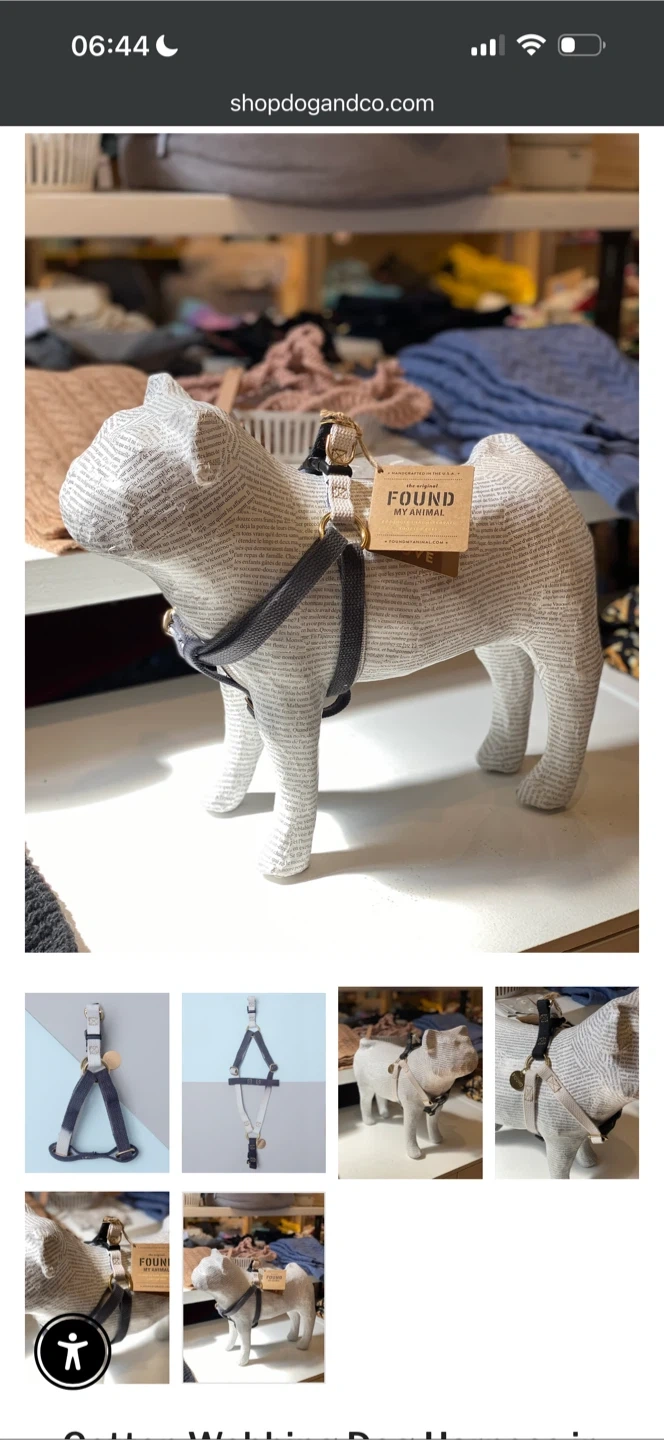 Hand dyed and crafted dog and cat harnesses from 100% cotton webbing. Top stitched with industrial thread for durability. Attached is a stamped FOUND tag. Made in Brooklyn.