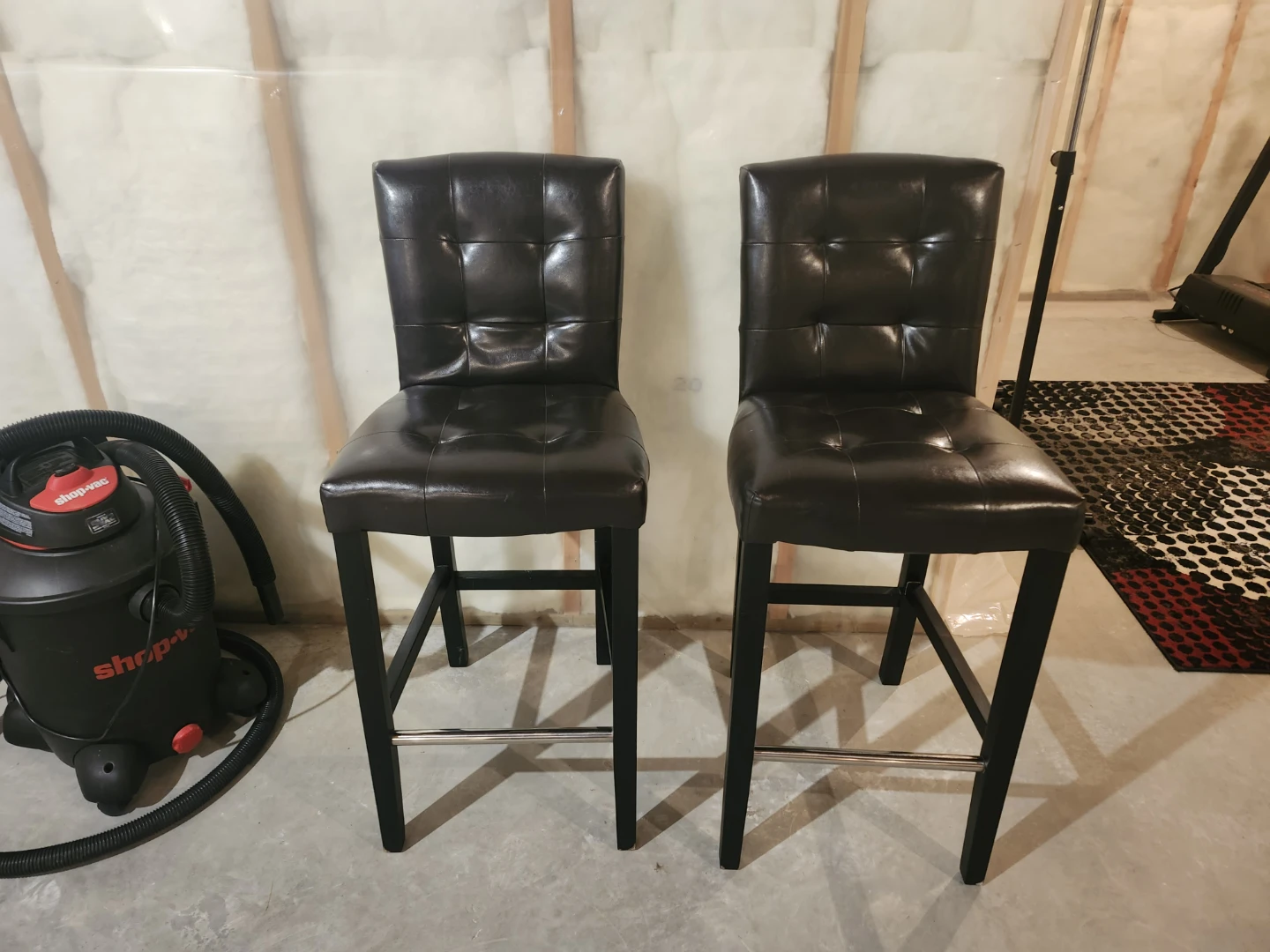 Selling a set of two bar stools in great condition! They feature a sleek black finish and faux leather seats. Perfect for adding a touch of modern style to your kitchen or bar area