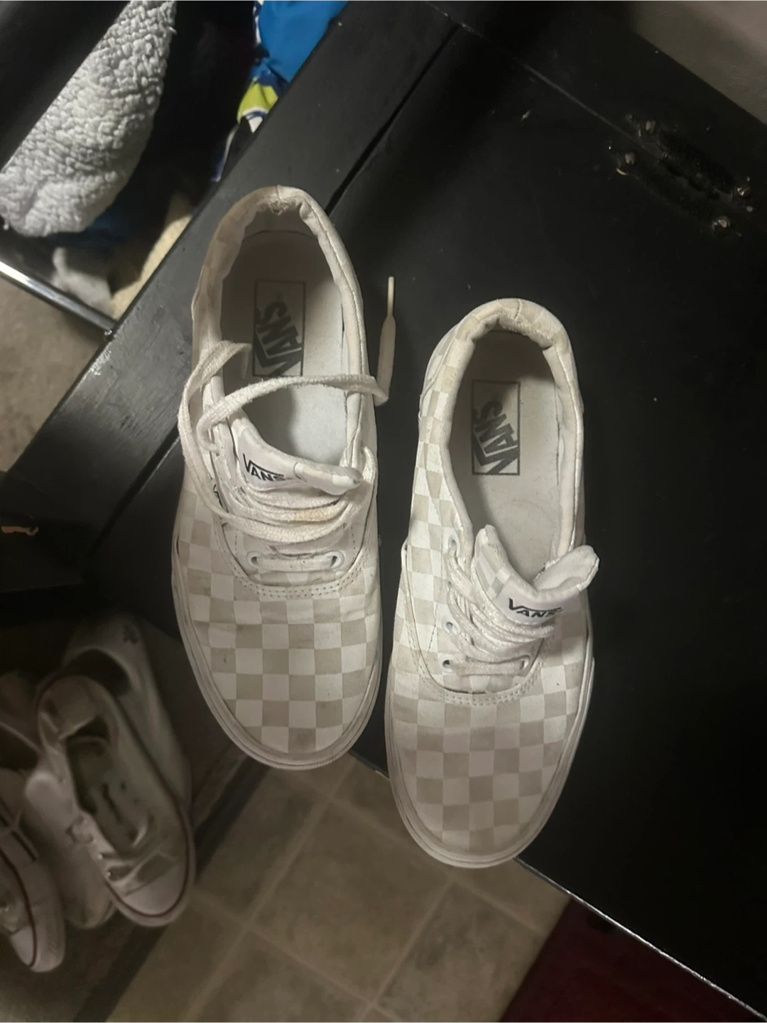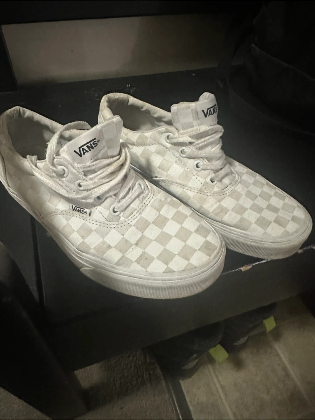 Selling a pair of Vans Authentic sneakers in the classic white checkerboard pattern. They're in used condition, but still have lots of life left! Great for casual wear or skateboarding. Size is not visible, please see photos for condition