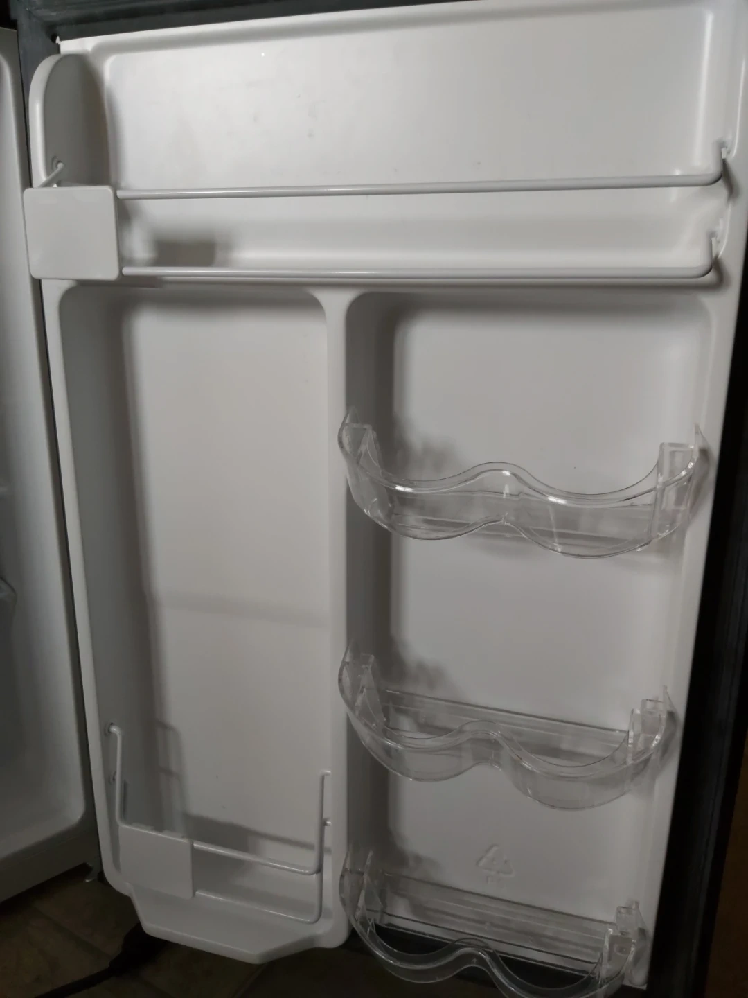 Built-in door storage, including a dedicated section for tall bottles/cans and smaller items.