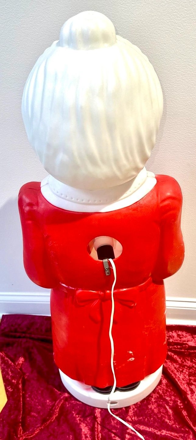 This is a beautiful vintage addition to your Christmas decorations. It's a 40" tall Mrs. Claus blow mold in great condition. It stands 40" tall, has been tested and lights up, and has been well cared for. It's in great condition for its age with no breaks, cracks, or dents, just some minor scuffs, scratches, and paint fades. Please see photos. Cash only sale. Buyer must pick up from the Morton Grove Area. Please check out my other listings.