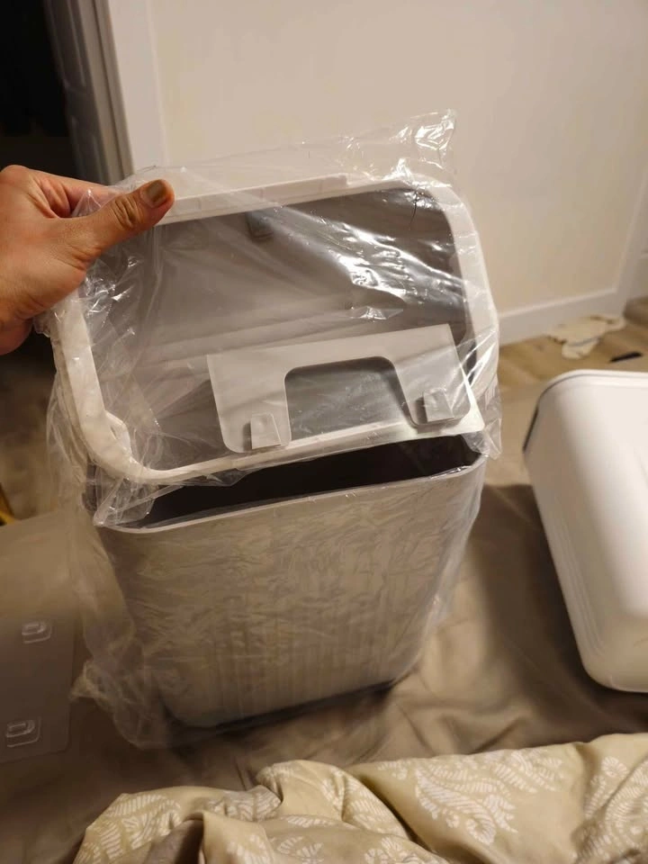 Multi-purpose organic compost bins that can also be used as bathroom or kitchen trash bins. Modern white and grey design with lid, compact and space-saving. Suitable for organic waste / compost. Can be used as bathroom bin or small trash bin. Can be hung on a cabinet/door or stuck to the wall. Sturdy plastic, easy to clean. New condition (original packaging). Perfect for kitchens, bathrooms, condos, or small spaces. Single piece for 20 dollars. GREY SOLD ONLY WHITE AVAILABLE.