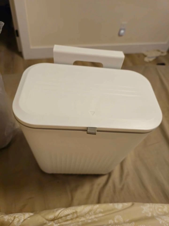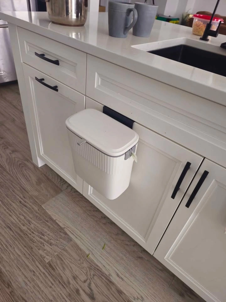 Multi-purpose organic compost bins that can also be used as bathroom or kitchen trash bins. Modern white and grey design with lid, compact and space-saving. Suitable for organic waste / compost. Can be used as bathroom bin or small trash bin. Can be hung on a cabinet/door or stuck to the wall. Sturdy plastic, easy to clean. New condition (original packaging). Perfect for kitchens, bathrooms, condos, or small spaces. Single piece for 20 dollars. GREY SOLD ONLY WHITE AVAILABLE.