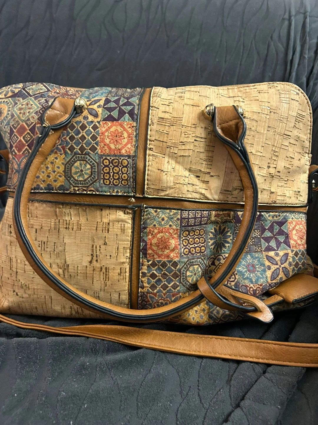Cork and Patterned Tote Bag