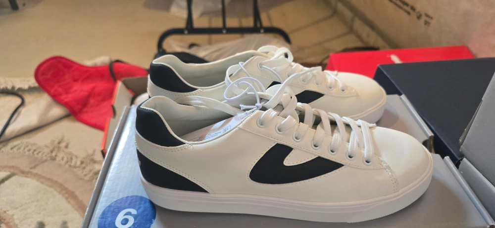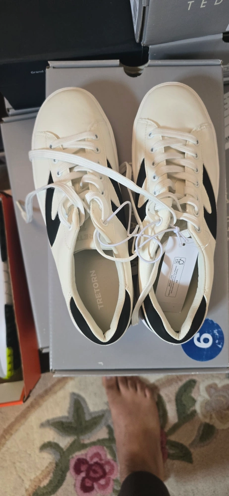 Selling a pair of Tretorn sneakers! They're a stylish white with black accents and in size 9. Perfect for adding a touch of sporty chic to your everyday look