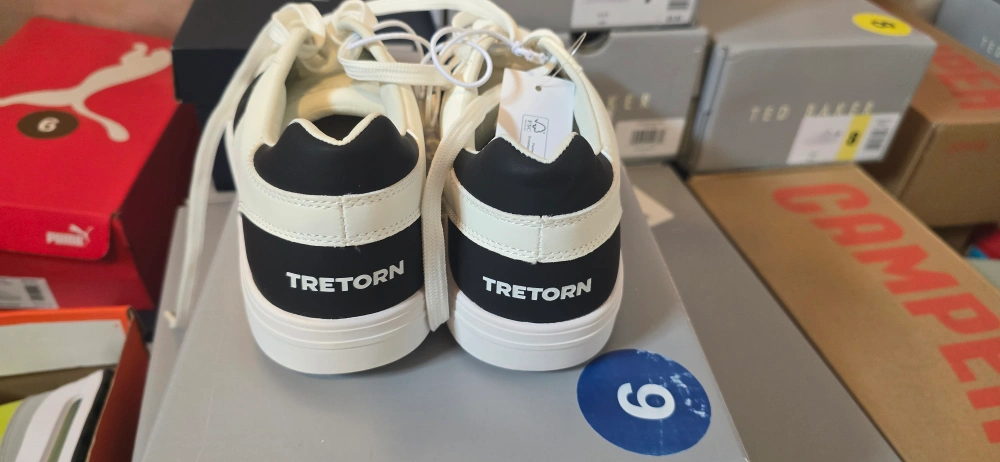 Selling a pair of Tretorn sneakers! They're a stylish white with black accents and in size 9. Perfect for adding a touch of sporty chic to your everyday look