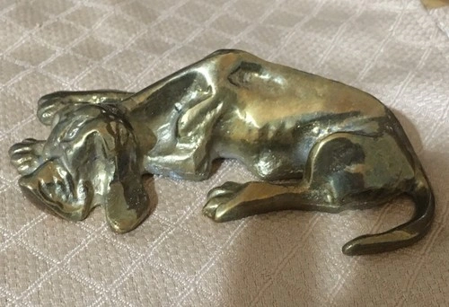 Vintage Brass Hound Dog Figurine Paper Weight is adorable and an excellent addition to your desk or bookshelf. He is lovely. Approximately 5 inches (13cm) long and 2.5 inches (6cm) wide and 2 inches (4-5cm) tall.