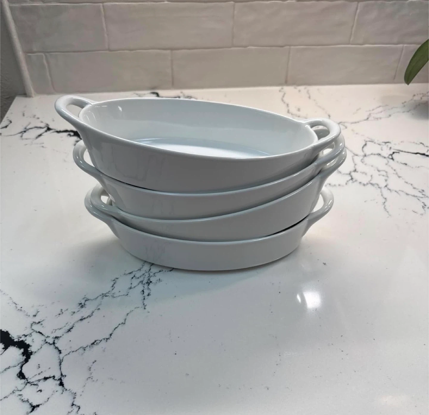 Baking Dishes for Oven Safe and Microwave Cooking and Baking, 4 Pc. Set, Heat Resistant Ceramic with Handles for Serving, Small Mini Casserole Dish, 8" x 5", 16 oz, White!!