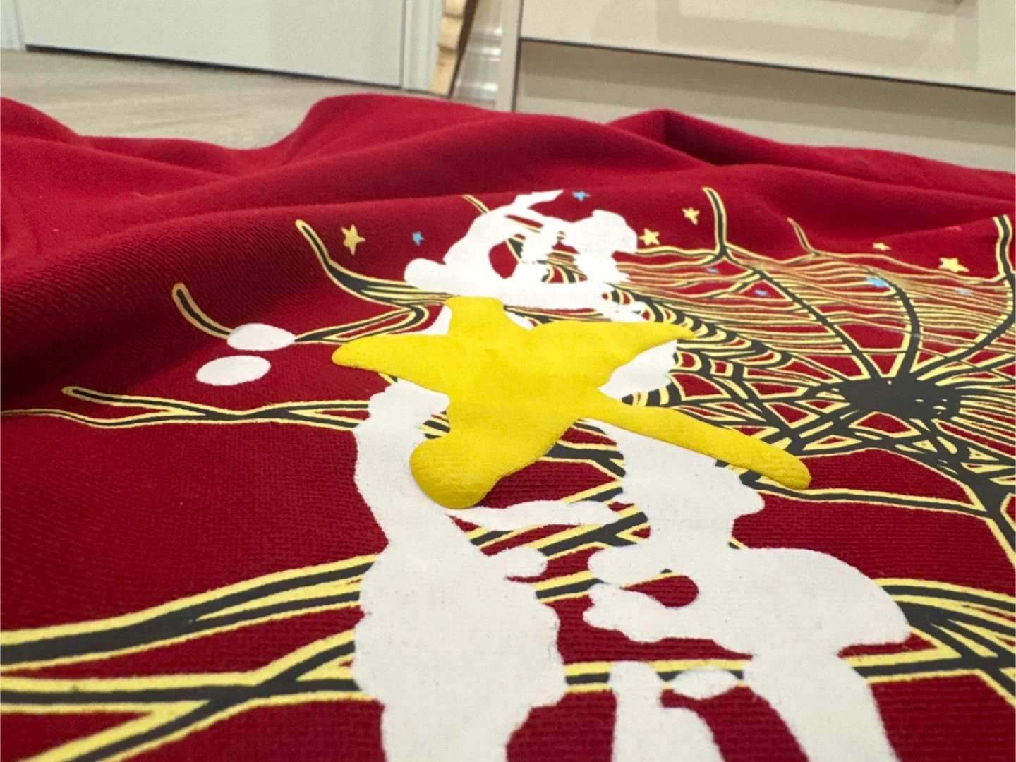 Selling a Spider Worldwide hoodie in red, size medium! The hoodie is made of 100% cotton and has a unique design. Care instructions: Machine wash cold, tumble dry low, do not bleach or iron