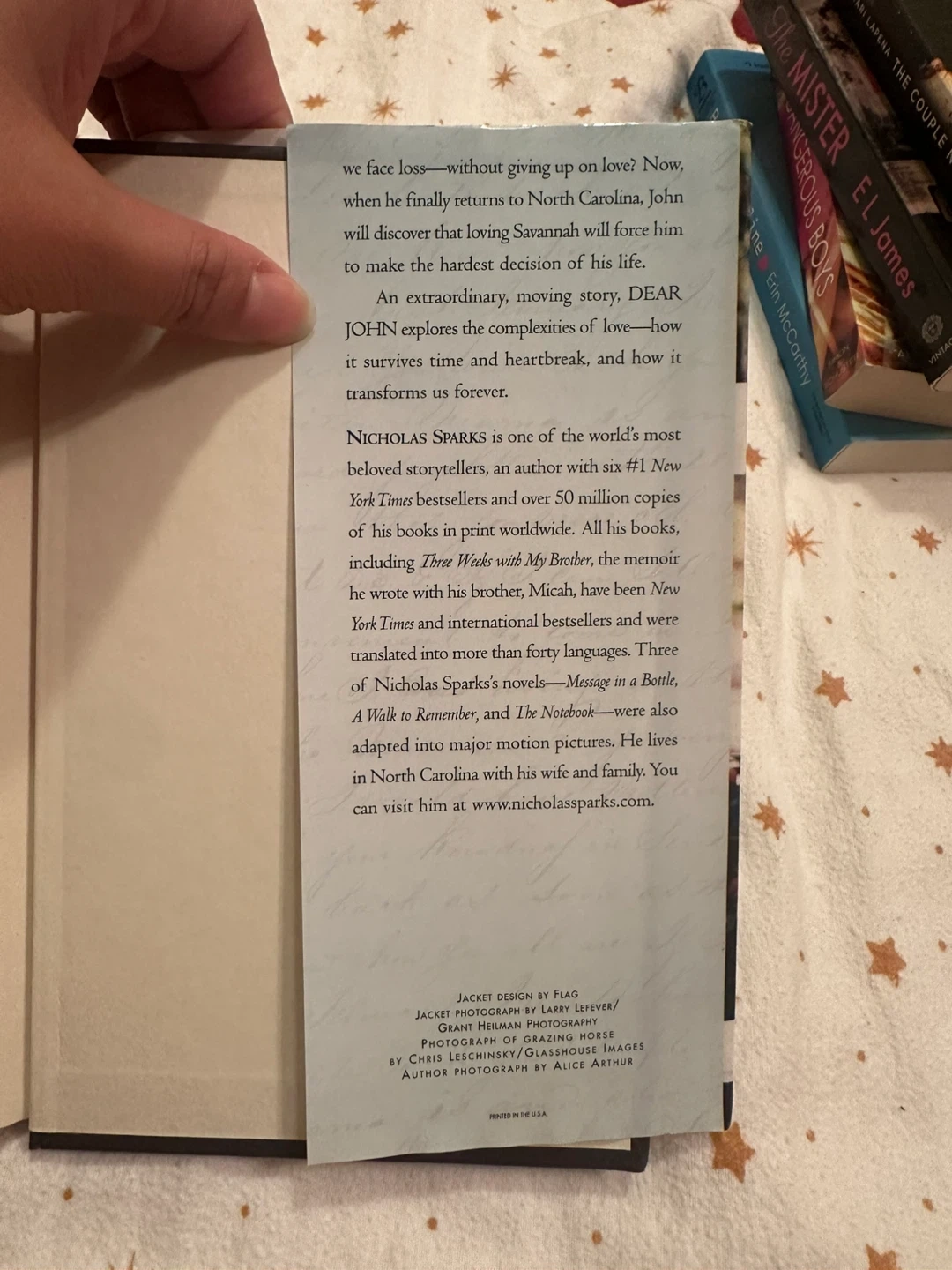 Selling the novel Dear John by Nicholas Sparks! It's a captivating story by the #1 New York Times Bestselling Author. Perfect for anyone who enjoys a heartfelt read