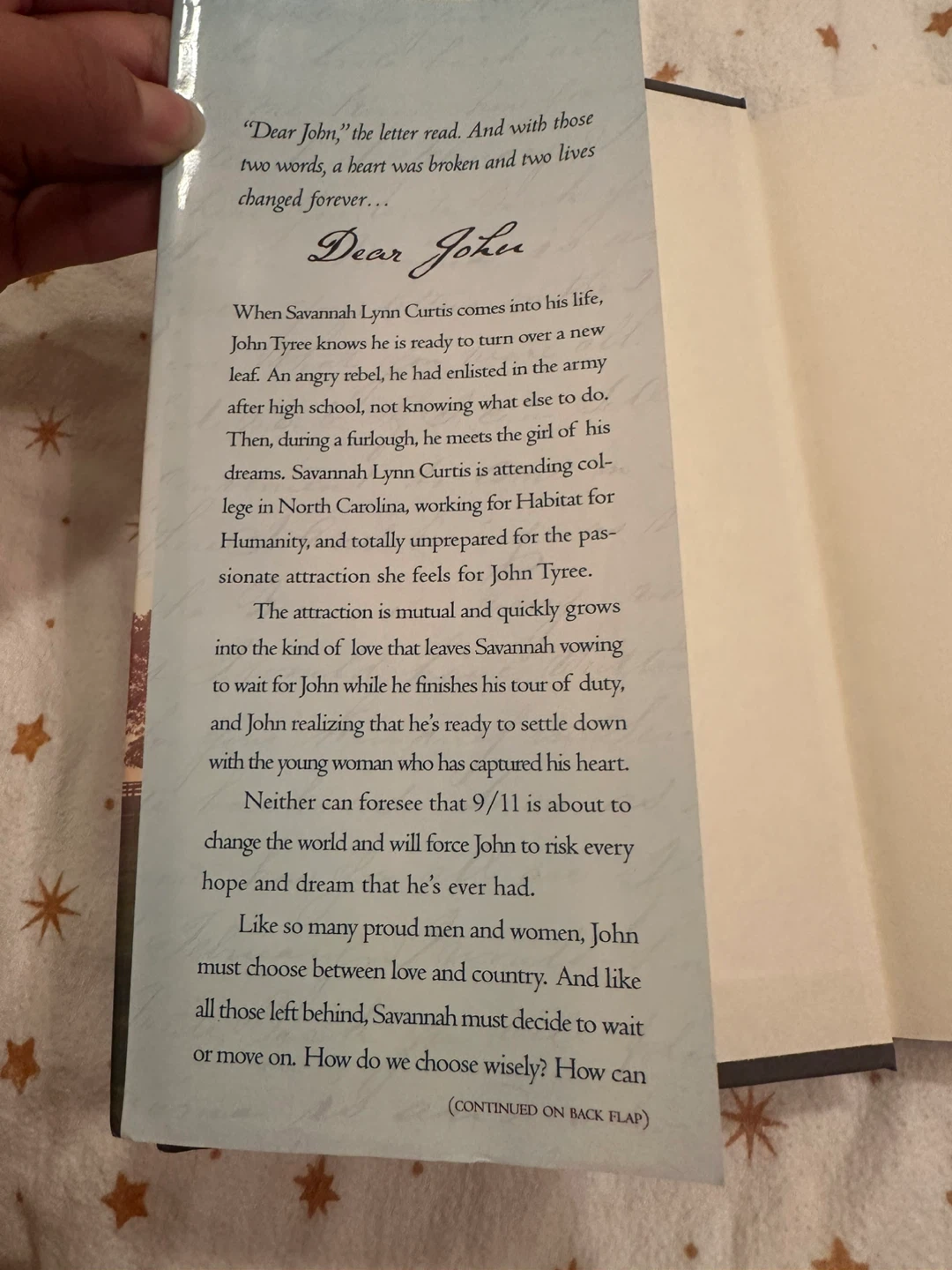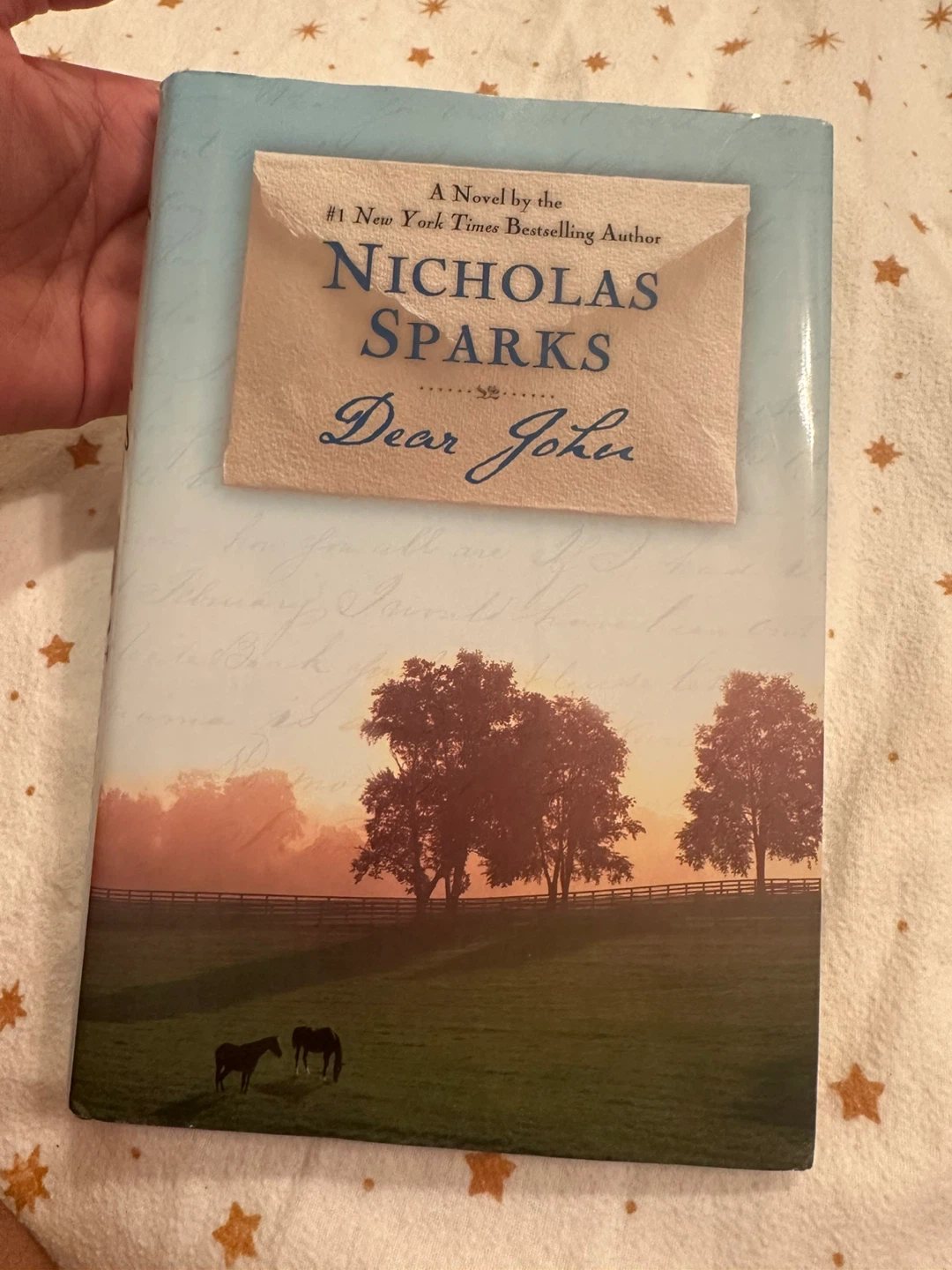Selling the novel Dear John by Nicholas Sparks! It's a captivating story by the #1 New York Times Bestselling Author. Perfect for anyone who enjoys a heartfelt read