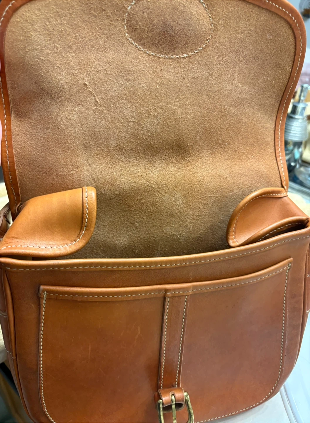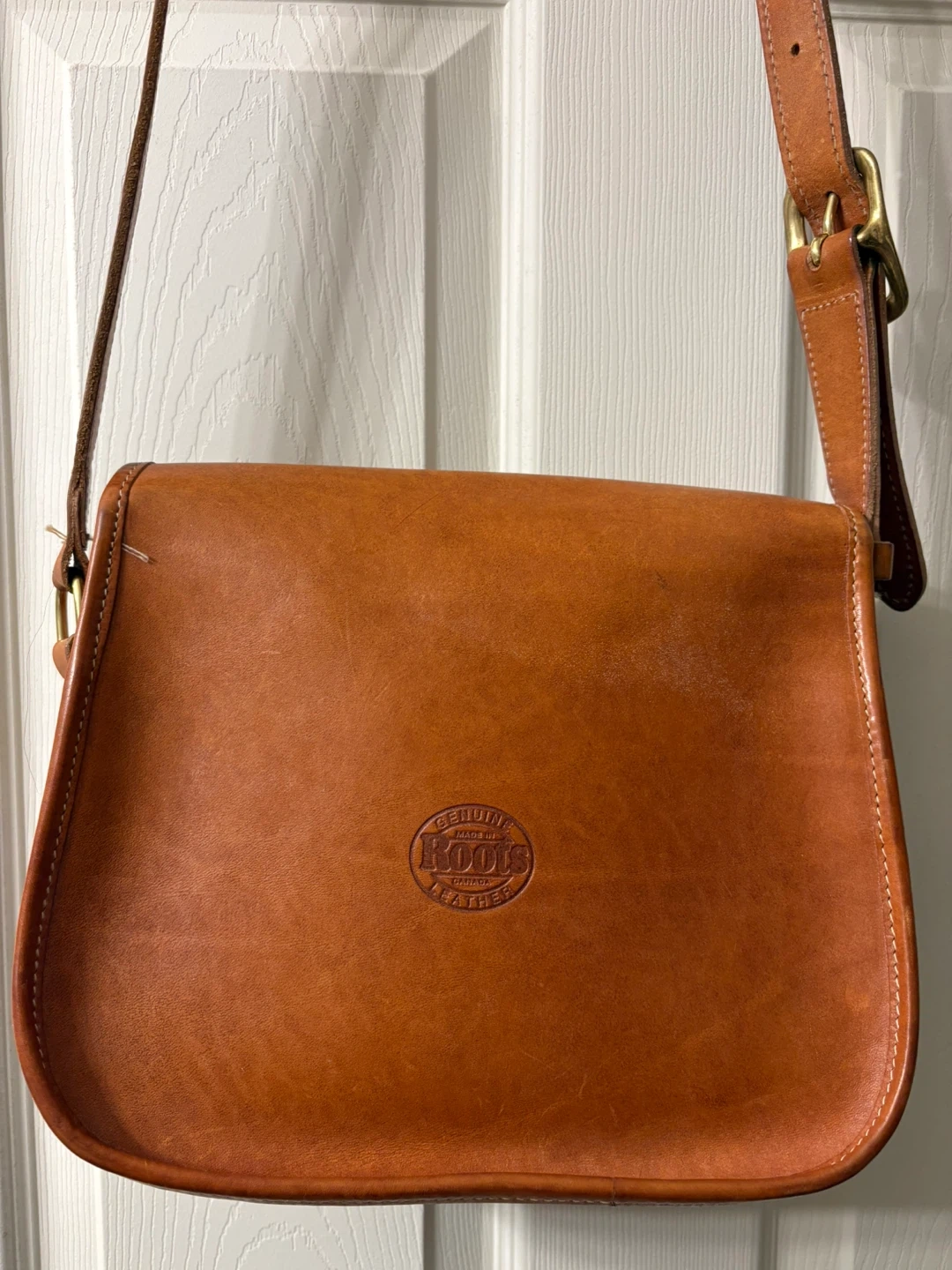 This is a classic saddle bag made by Roots. It's crafted from genuine, rich brown leather. The adjustable strap makes it comfortable to wear. This beautiful bag is in great condition, just like new! Pick up in Chestermere.