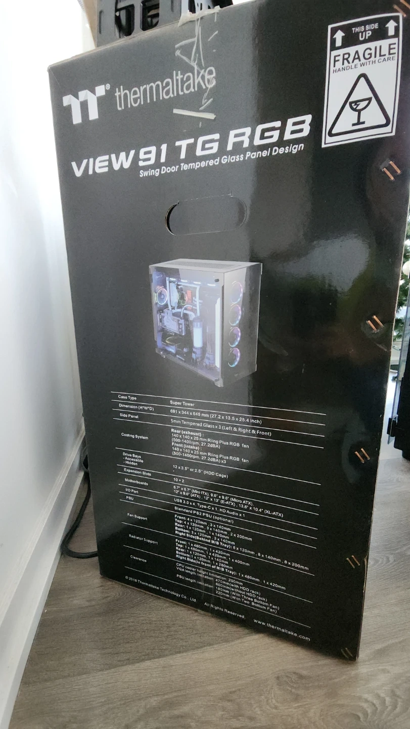 This is a Thermaltake VIEW 91 TG RGB Super Tower computer case. I originally got it for $500, selling it more than half off. I'm switching to all white setup that's why selling my old gaming work pc, otherwise this functions perfectly. It is a massive case for hardcore gaming enthusiasts that lets you build in whatever fashion you like, aircooled or liquid cooled, it can fit ABSOLUTELY ANYTHING in it given the super tower size. It features double swing doors tempered glass panel design. Supports up to 4 x 140mm fans and has multiple I/O ports, including USB 3.0 and Type-C.