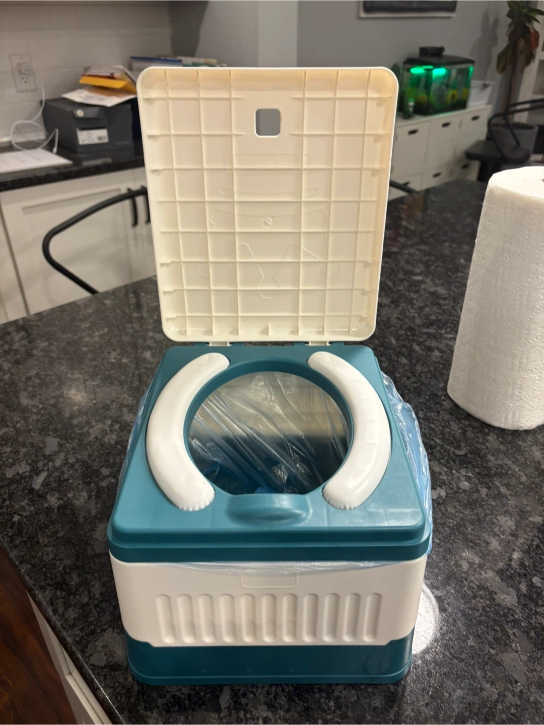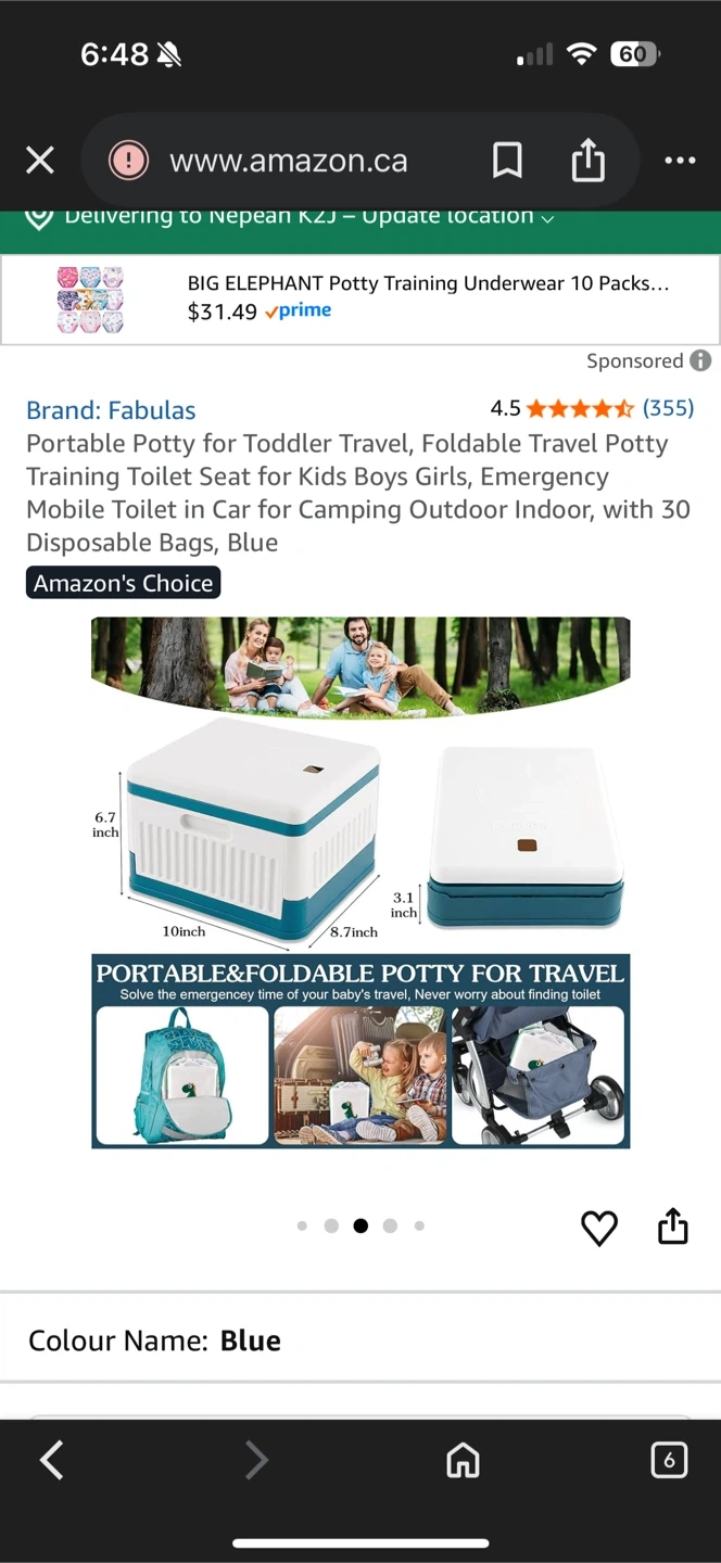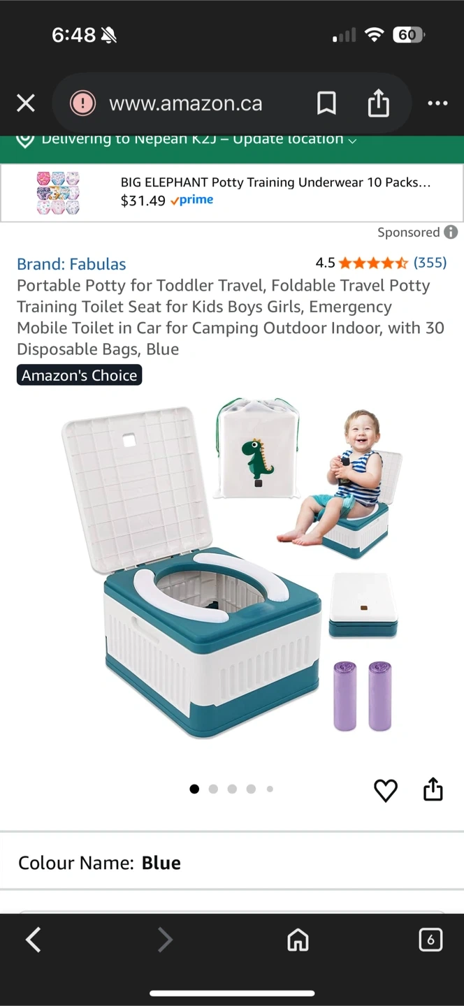 Selling a Fabulas portable potty, perfect for travel with toddlers! It's foldable and comes in blue. Great for emergency use in the car, camping, or even indoors. Includes disposable bags for easy clean up. Never used.