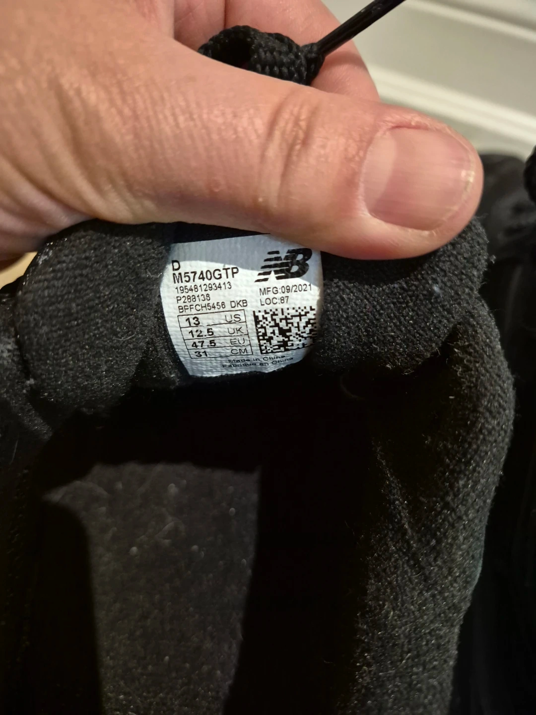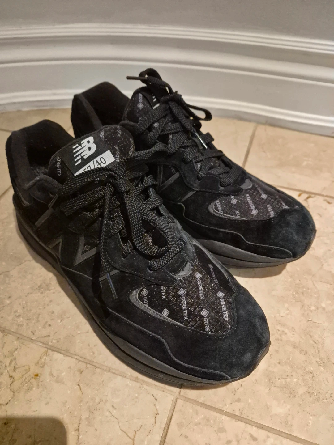 Like New Balance M5740TP Gore-Tex sneakers in black. Men's size 13 US. My husband wore tgem only once. Great shoes for walking offerings durable, waterproof protection.