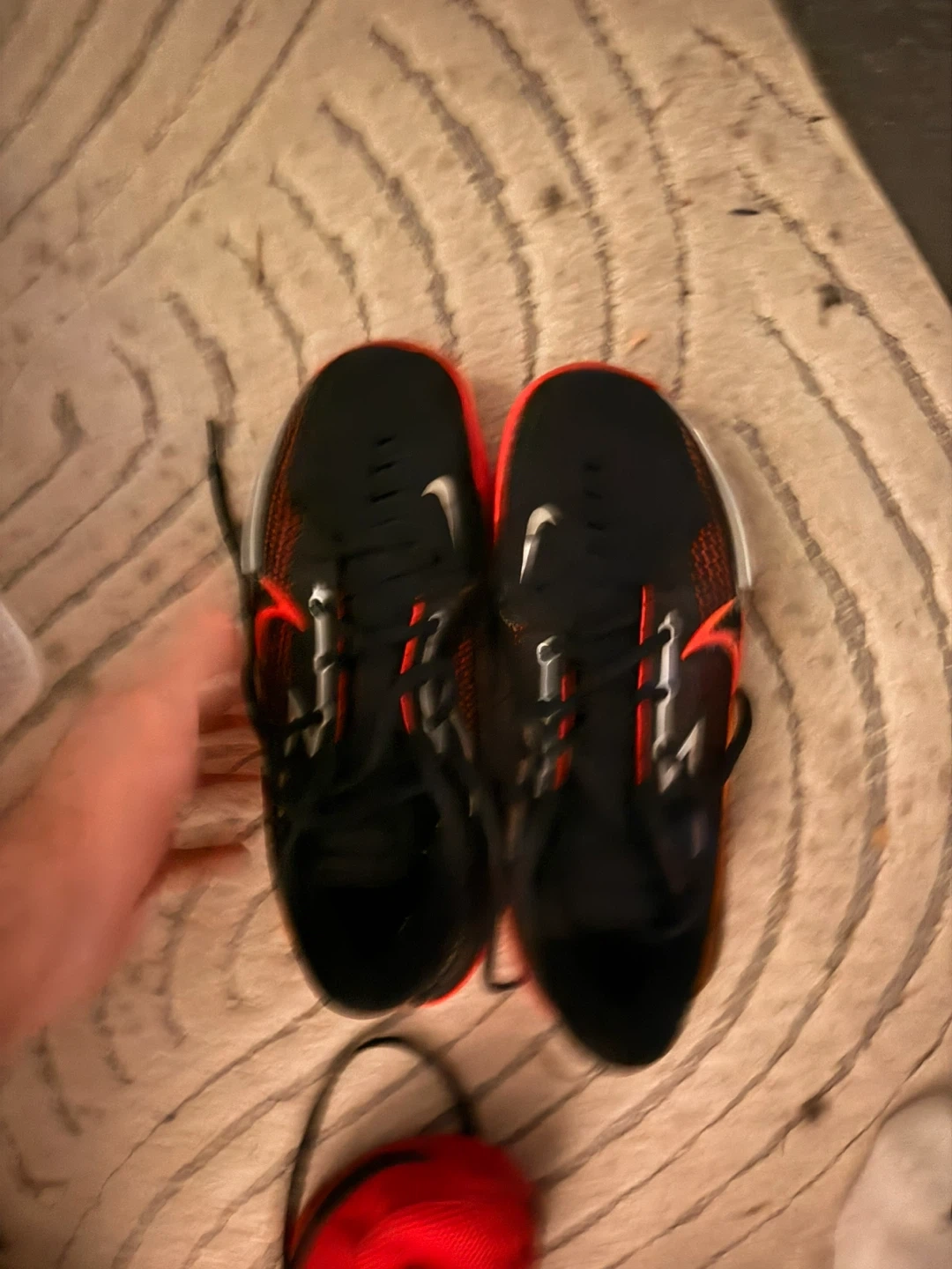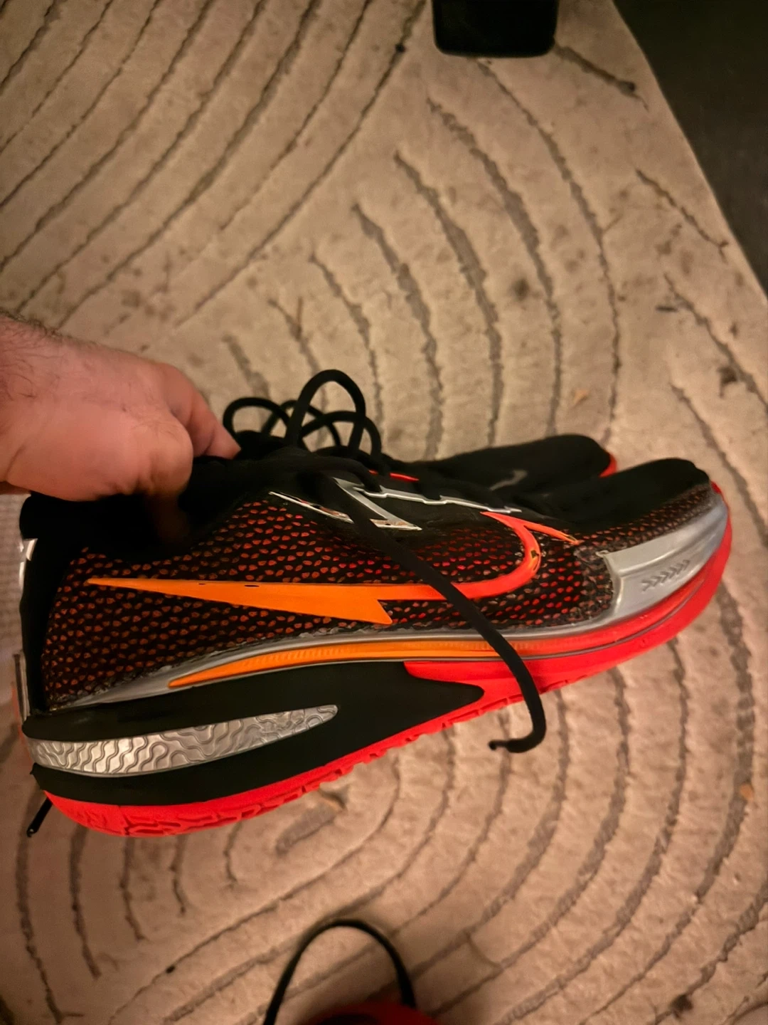 These Nike Air Zoom GT Cut 2 basketball shoes are black with orange accents. They feature a rubber outsole for traction. Great for playing basketball!
