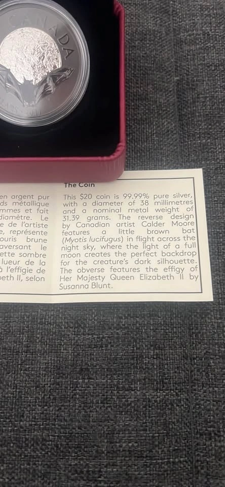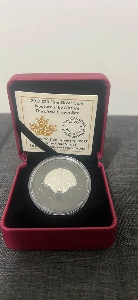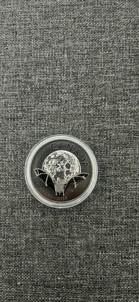 1oz Fine Silver Coin with a beautiful brown Bat with a Matte Black finish behind it. It was minted at the Royal Canadian Mint and comes with the original box and papers. I have 3 available.