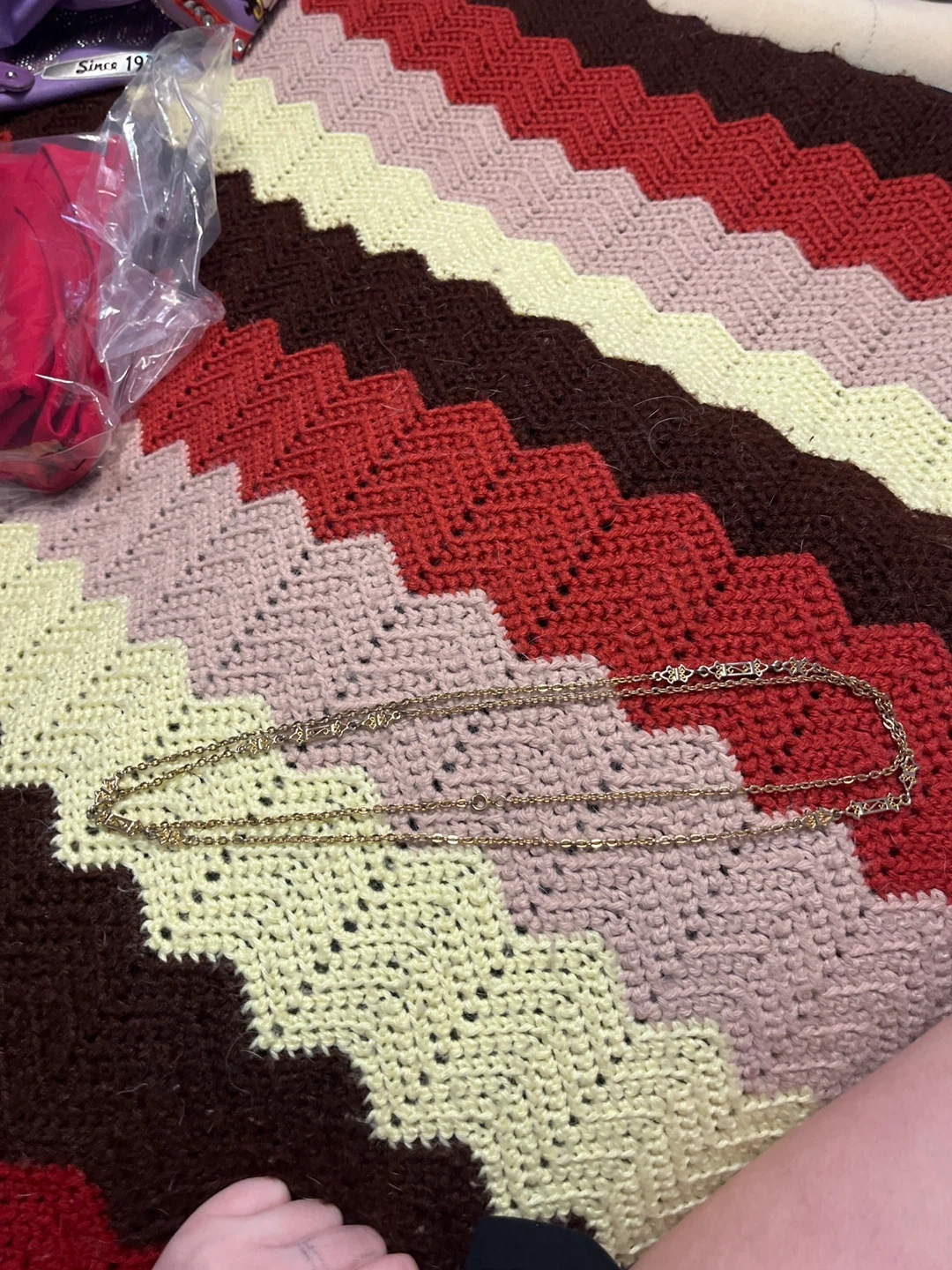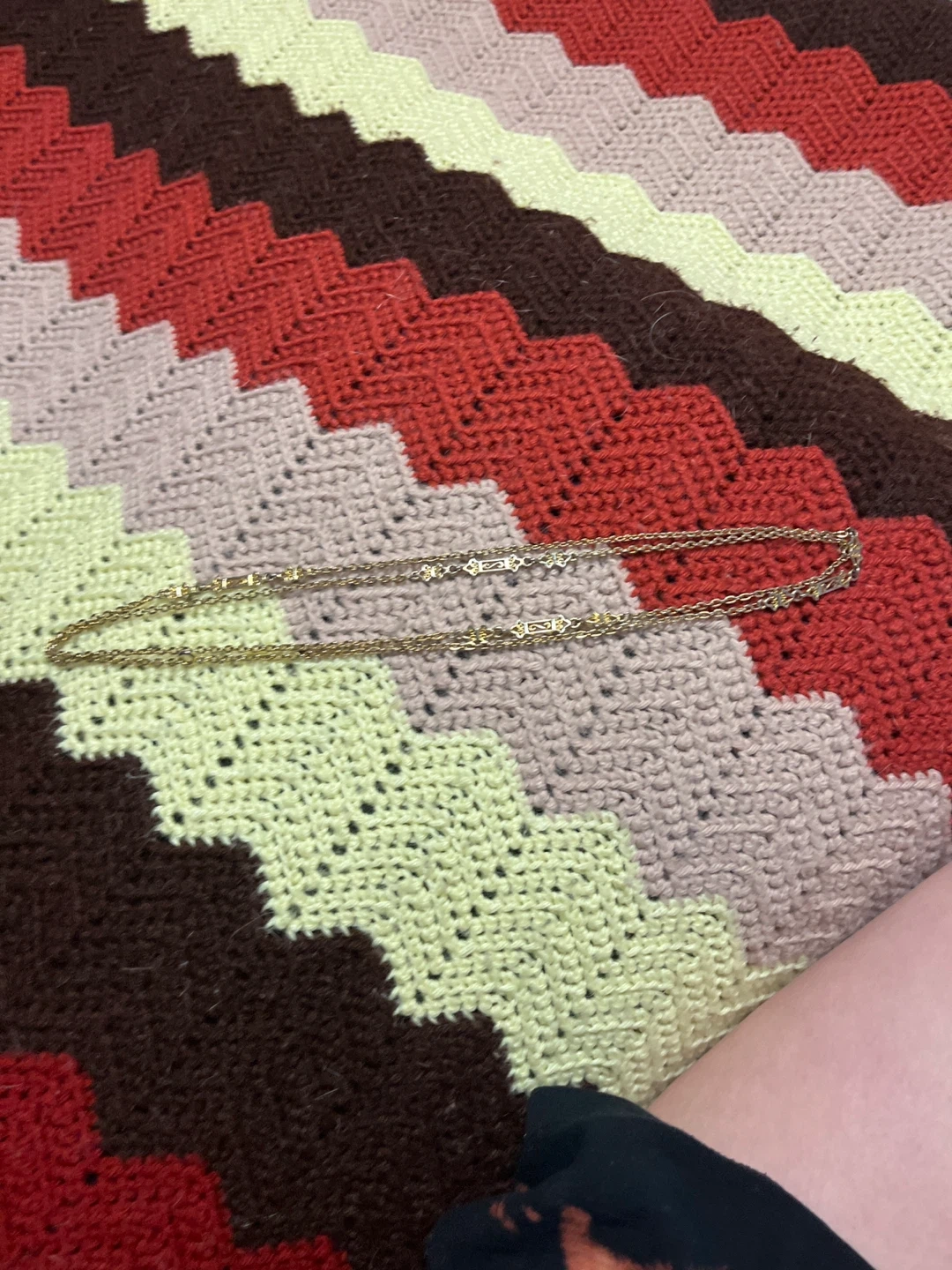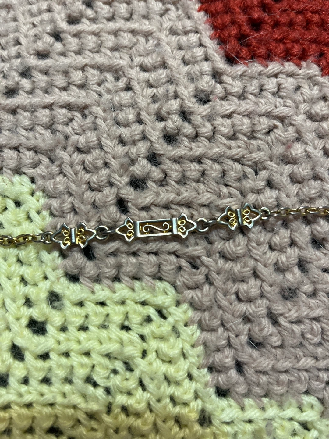 A delicate gold-tone chain necklace. Features a decorative clasp with intricate detailing. Its lightweight design makes it perfect for everyday wear. I think I got it for 25 dollars, probably not real but I don’t know, looking for 20 or 15 dollars.