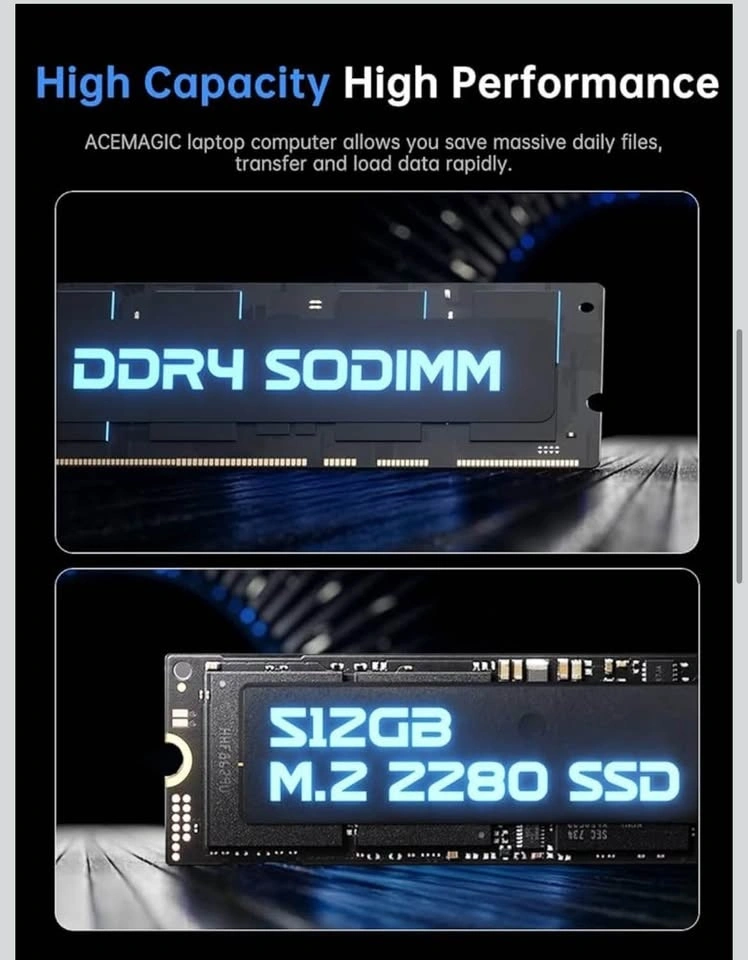 [ Huge Capacity Storage ] ACEMAGIC laptop computers comes with 16GB DDR4, which can reduce read latency of memory data and improve CPU utilization. Built-in 512GB M.2 2280 SSD, enough storage to ensure smooth system while saving more personal files. ACEMAGIC windows laptop offers fast startup and loading of applications, as well as a large amount of storage space for your various files