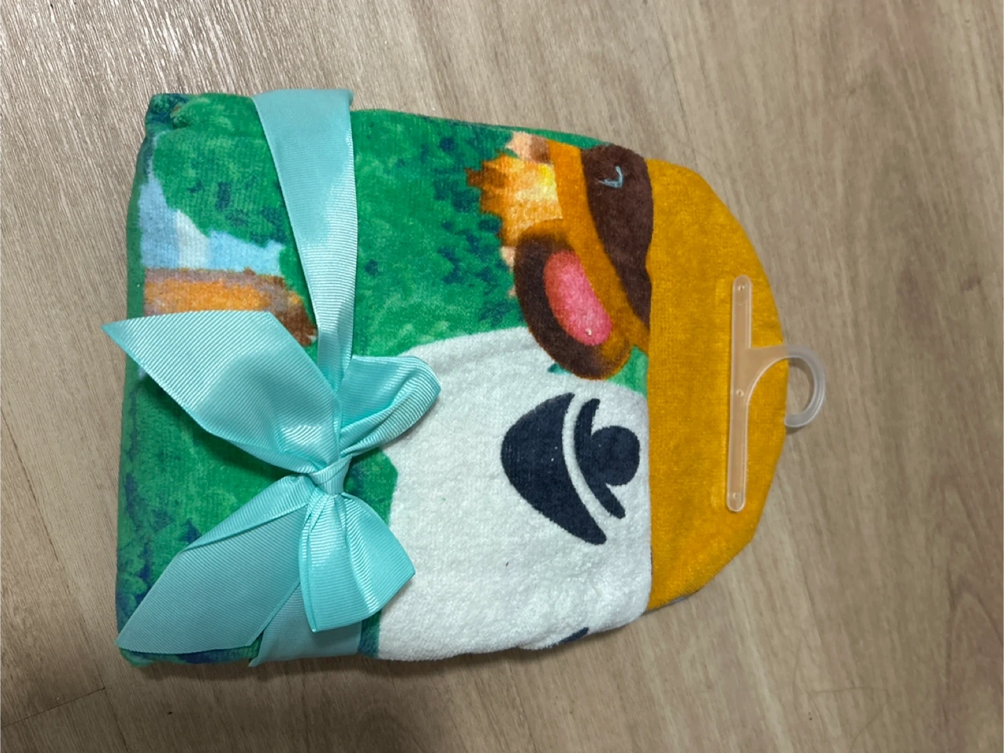 I have a brand new Animal Crossing hooded towel wrap for sale! It's a soft and cozy towel that's perfect for after bath time or a day at the pool.