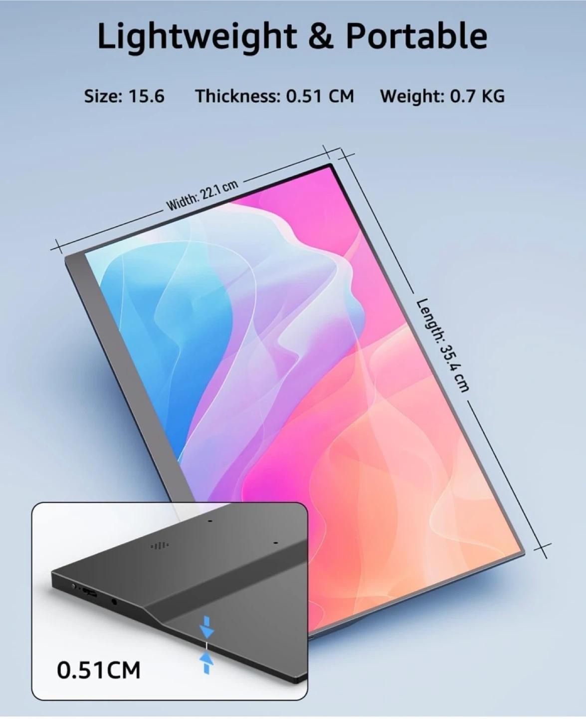 Ultra-Slim & Productive: At just 740g and 0.51cm thick, this Yodoit portable monitor with touchscreen function acts as a perfect second screen—boosts work efficiency with seamless multitasking for travel, home offices, or on-the-go use