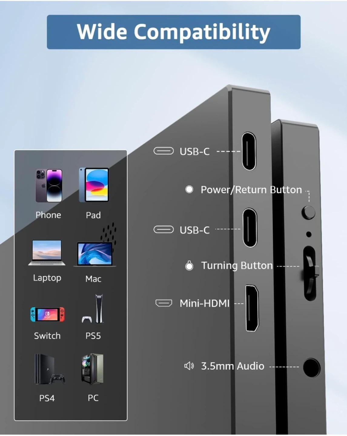 Wide Compatibility: Works seamlessly with PCs, Macs, laptops, smartphones (NEEDS full-featured USB-C), and gaming consoles (Xbox, Switch, PS4/PS5) via USB-C and mini HDMI