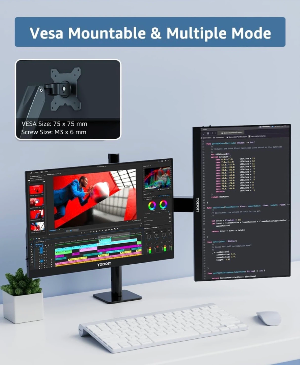Ultra-Slim & Productive: At just 740g and 0.51cm thick, this Yodoit portable monitor with touchscreen function acts as a perfect second screen—boosts work efficiency with seamless multitasking for travel, home offices, or on-the-go use
