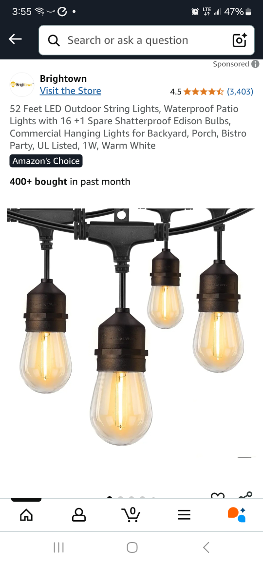 Brightown outdoor string lights, perfect for a relaxed atmosphere. Featuring Edison bulbs and a sleek design, these lights would be ideal for any outdoor setting. Included are 16 spare bulbs.