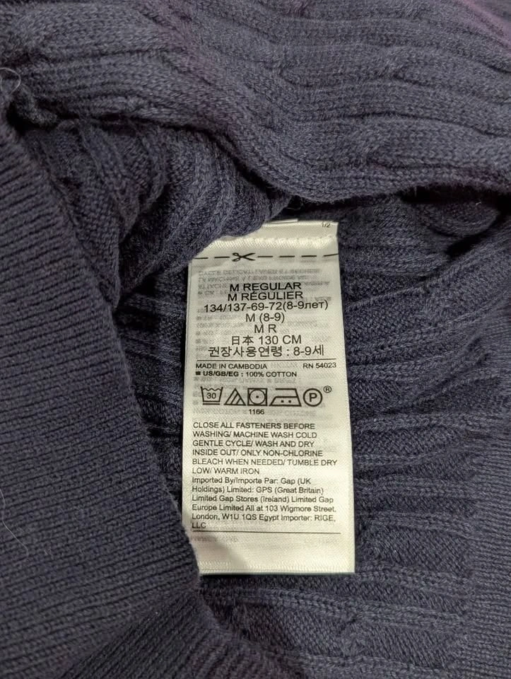 New navy blue GAP sweater/cardigan. Navy Blue color. 100% cotton. Size 8-9. Pickup in Nobleton.
