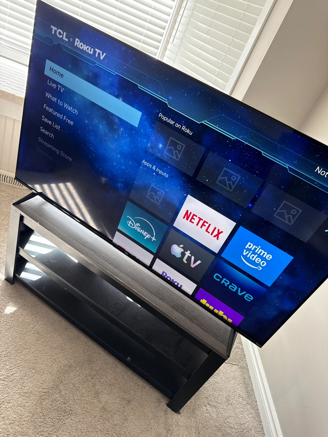 TCL Roku TV for streaming your favourite content. It's a smart TV with access to various apps. This television is energy verified.