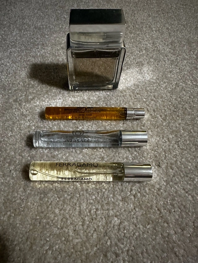 Selling a bundle of 4 colognes. Includes 3 travel size colognes, perfect if you’re just starting out or want to test scents before committing to a full bottle. The samples are from Versace, Ferragamo, and Replica Maison Margiela. Also includes 1 full-size Calvin Klein cologne. Great for all ages. Every one except Versace is almost full. OBO