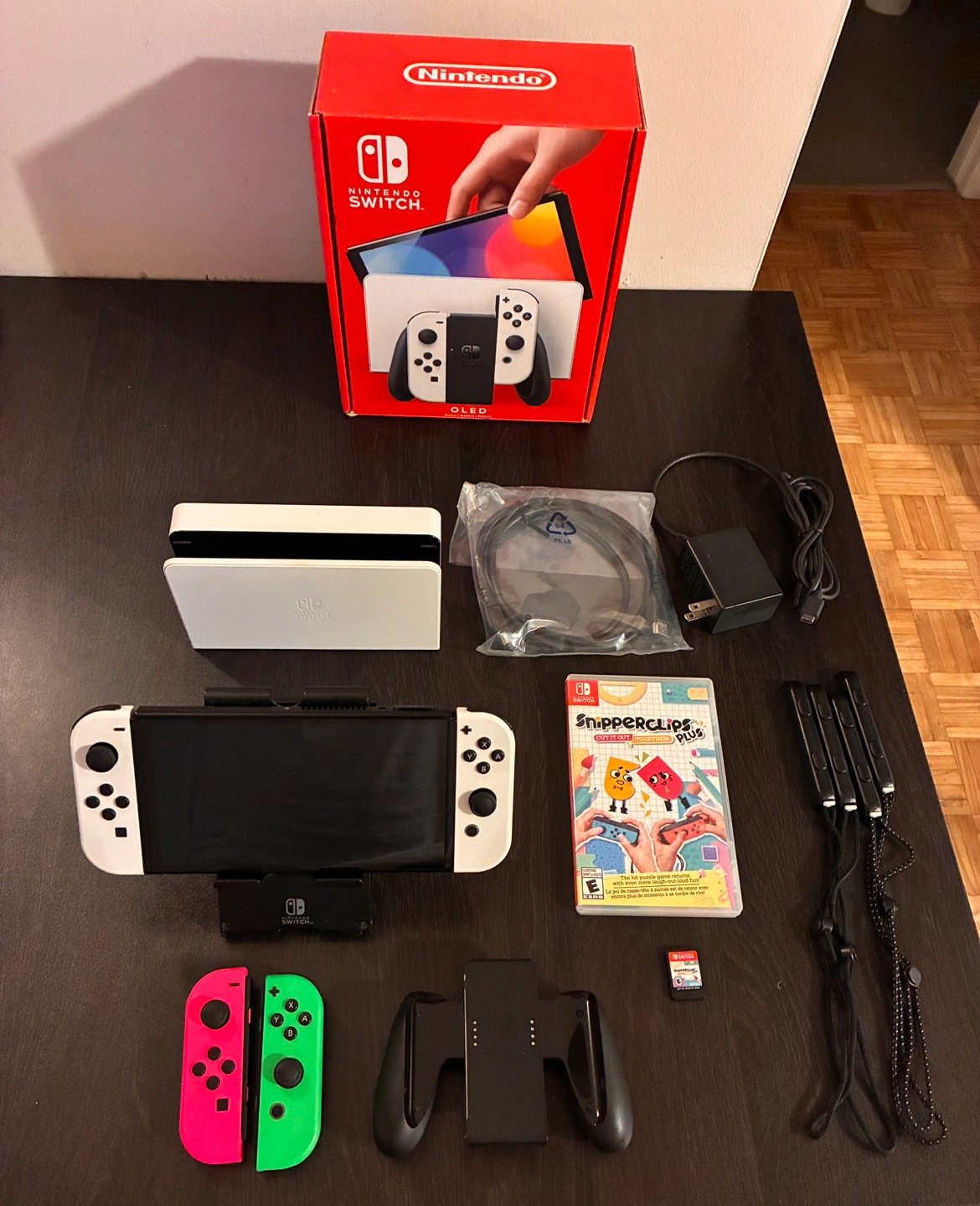 Switch OLED bundle comes with everything in the original box (HDMI cable never used) plus the following: