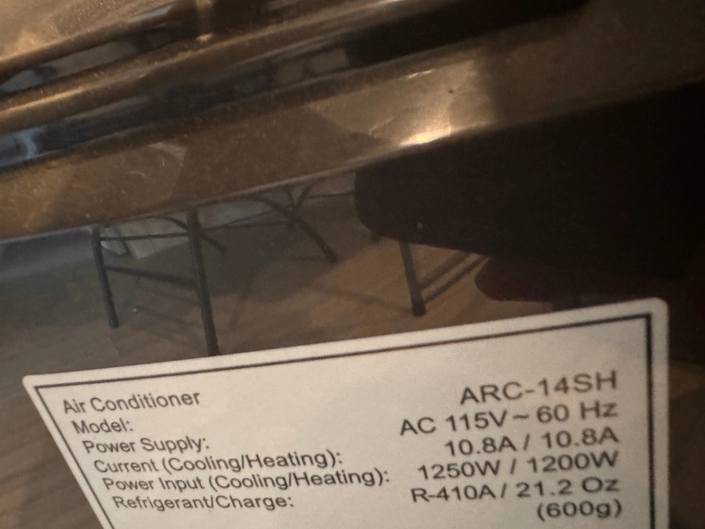 Selling a Whynter ARC-14SH portable air conditioner. It's in great shape and ready to keep you cool this summer! It runs on AC 115V~60 Hz and has a power input of 1250W/1200W for cooling/heating. The refrigerant is R-410A/21.2 Oz (600g)