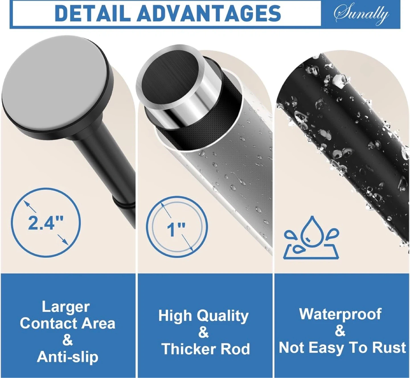 It's waterproof and not easy to rust, featuring a larger contact area for anti-slip grip. Perfect for bathrooms, bedrooms, or laundry rooms without drilling!
