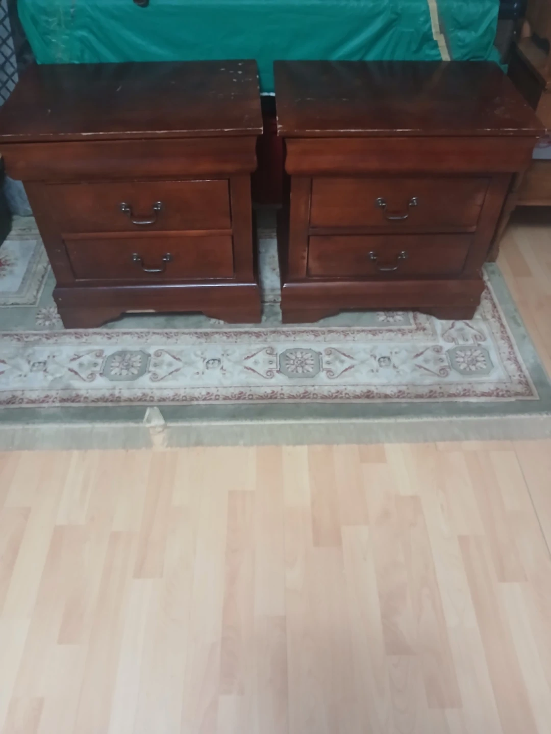 Buy & SellSet of 2 Wooden NightstandsSet of 2 Wooden Nightstands$60A pair of dark wood nightstands. Each has two drawers with metal handles. This set provides bedside storage.ConditionGoodWHERE TO MEET92 Radford Dr linkdale & KennedyView MapSELLERsherineHeart Lake W100 reviews3 chats·3 favorites·134 viewsSEND CHAT TO SELLERHi sherine! I’m interested in your listing.Hi sherine! I’m interested in your listing.Get the Karrot app to chatSign In to chat