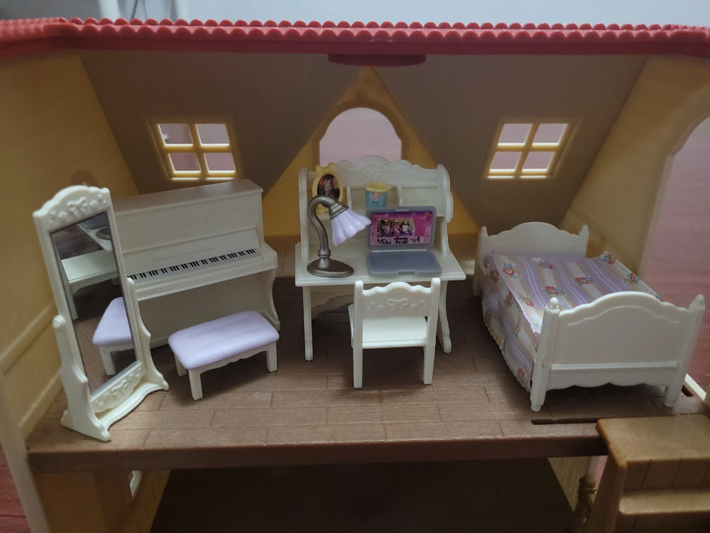 Selling a Calico Critters house with a bedroom set included . Includes all furniture also with 2 calico critters. It's in great shape and ready for a new home! Perfect for imaginative play and creating adorable stories with your Calico Critters families.